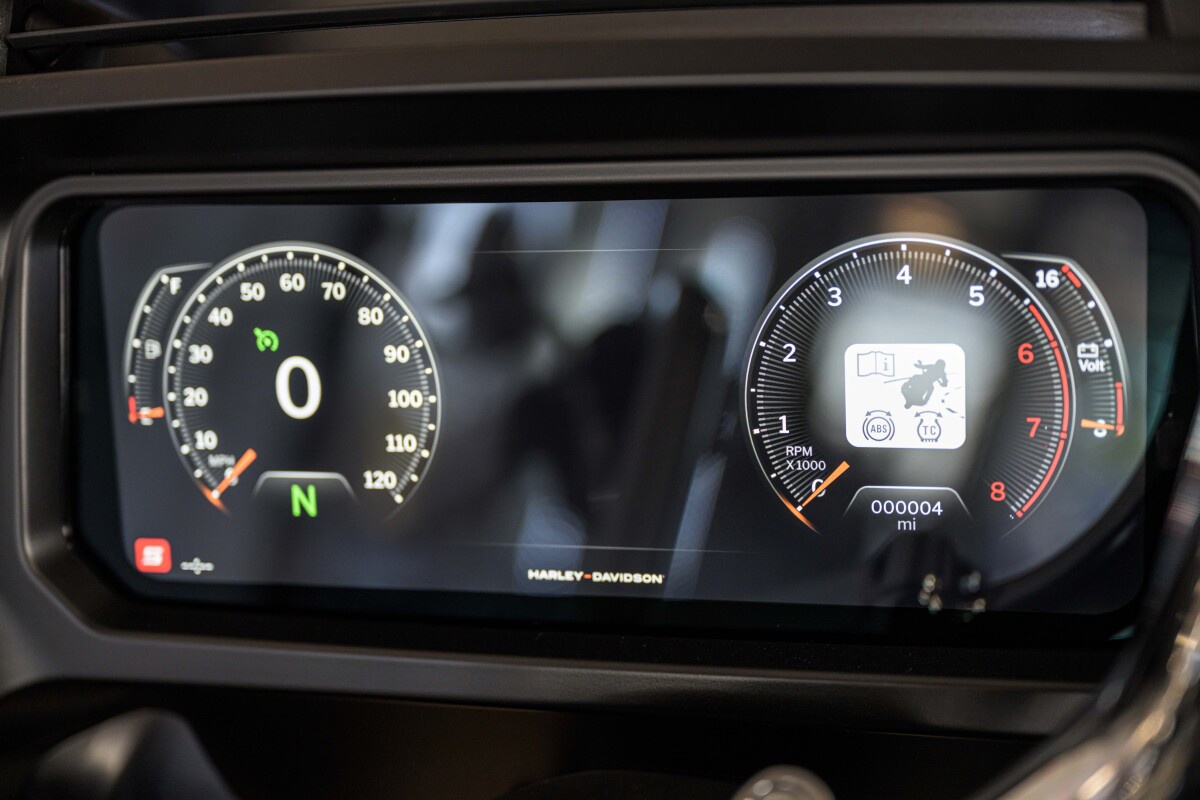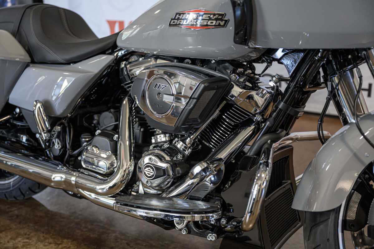 The Road Glide has an aerodynamic Sharknose fairing and a liquid-cooled Milwaukee-Eight 117 engine that produces 130 ft-lb of torque, while reduced weight makes handling more responsive. With customizable ride modes, Bluetooth connectivity, and a 12.3-inch touchscreen display, the Road Glide offers a refined mix of tech, style, and power.