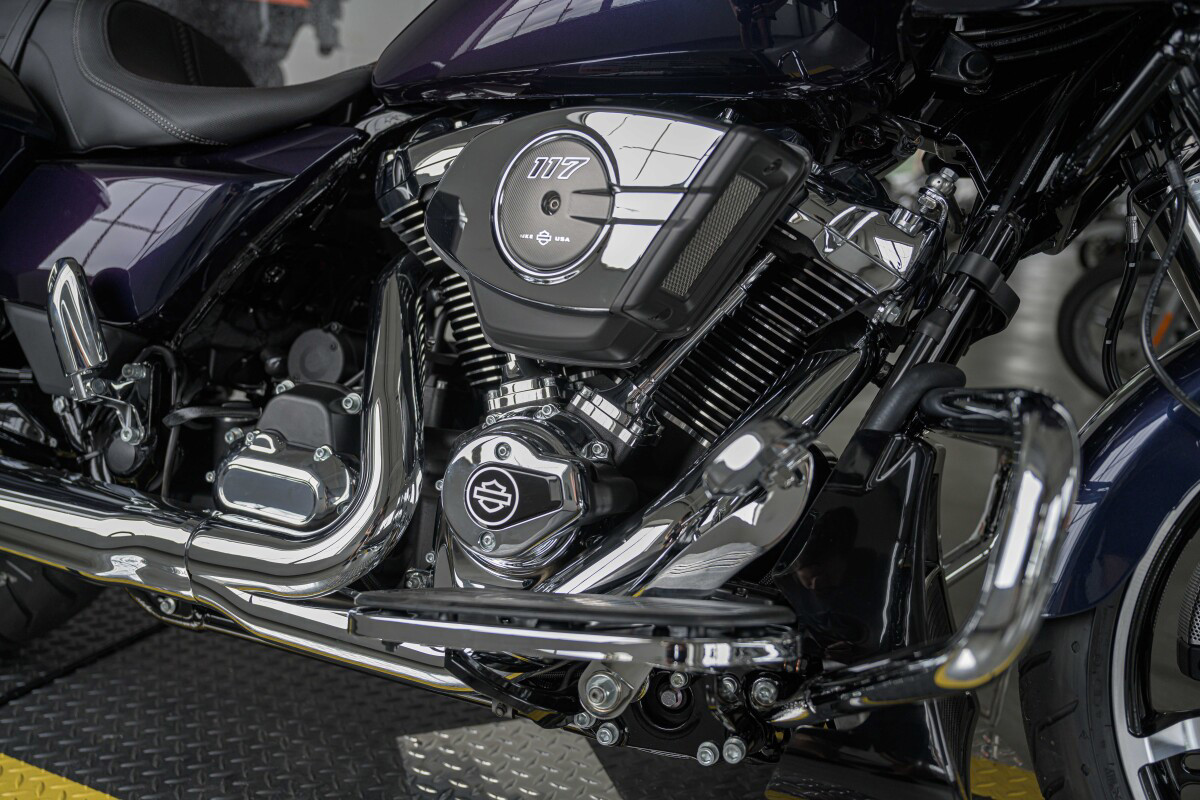 The Road Glide has an aerodynamic Sharknose fairing and a liquid-cooled Milwaukee-Eight 117 engine that produces 130 ft-lb of torque, while reduced weight makes handling more responsive. With customizable ride modes, Bluetooth connectivity, and a 12.3-inch touchscreen display, the Road Glide offers a refined mix of tech, style, and power.
