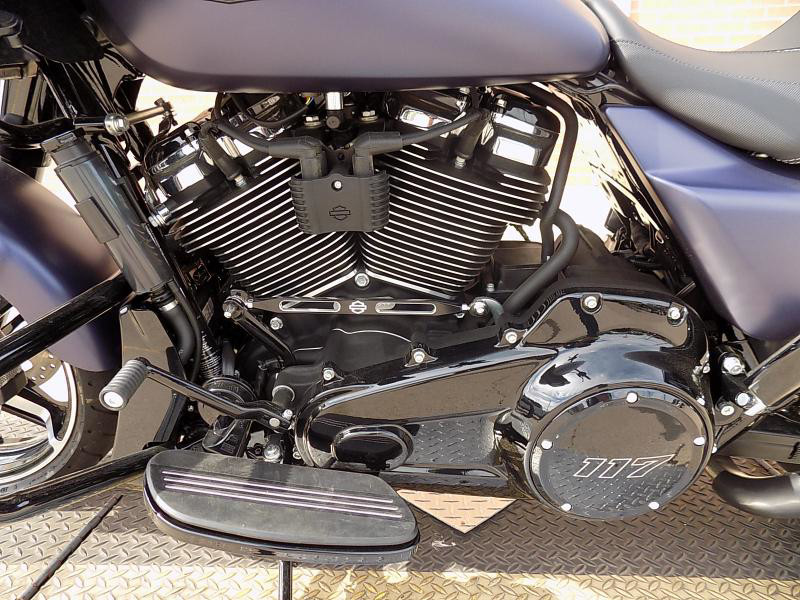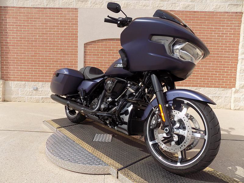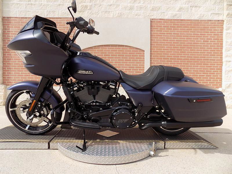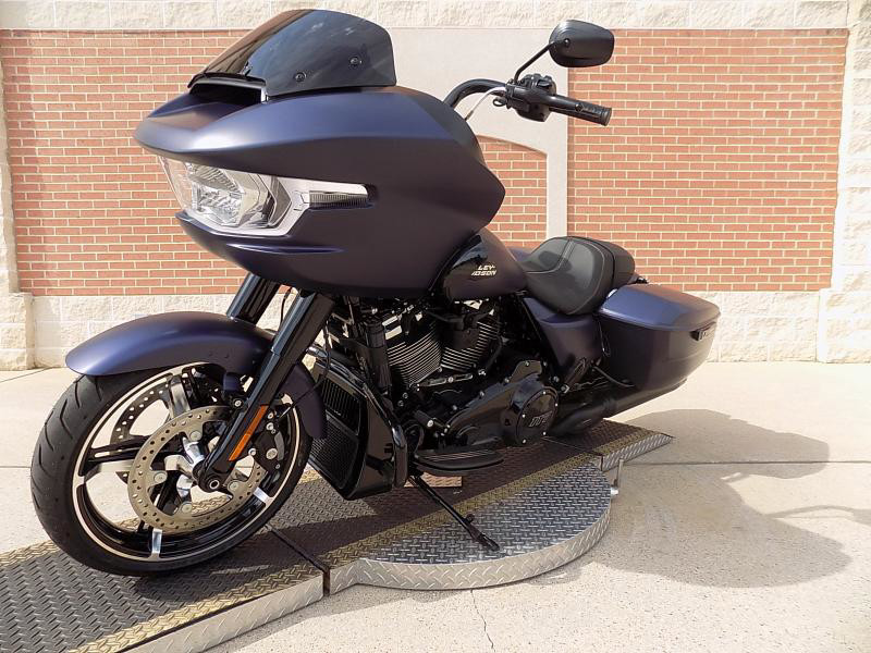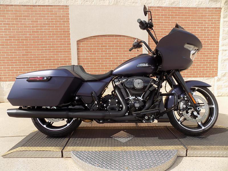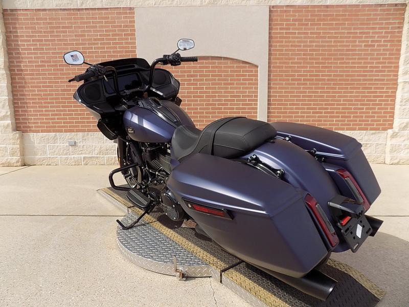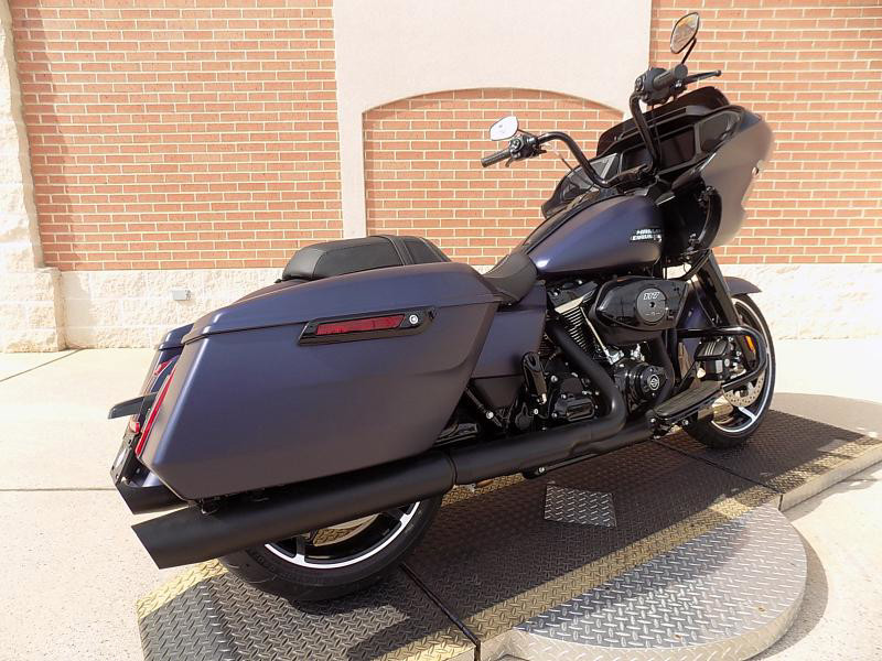 The exterior of this magnificent machine is dressed in a stunning "PRPL ABYSS DNM" color. This deep, rich hue not only enhances the bike's commanding presence on the road but also adds a layer of sophistication and charisma that is hard to miss. The bold color scheme is perfectly complemented by the sleek and aerodynamic design of the Road Glide.