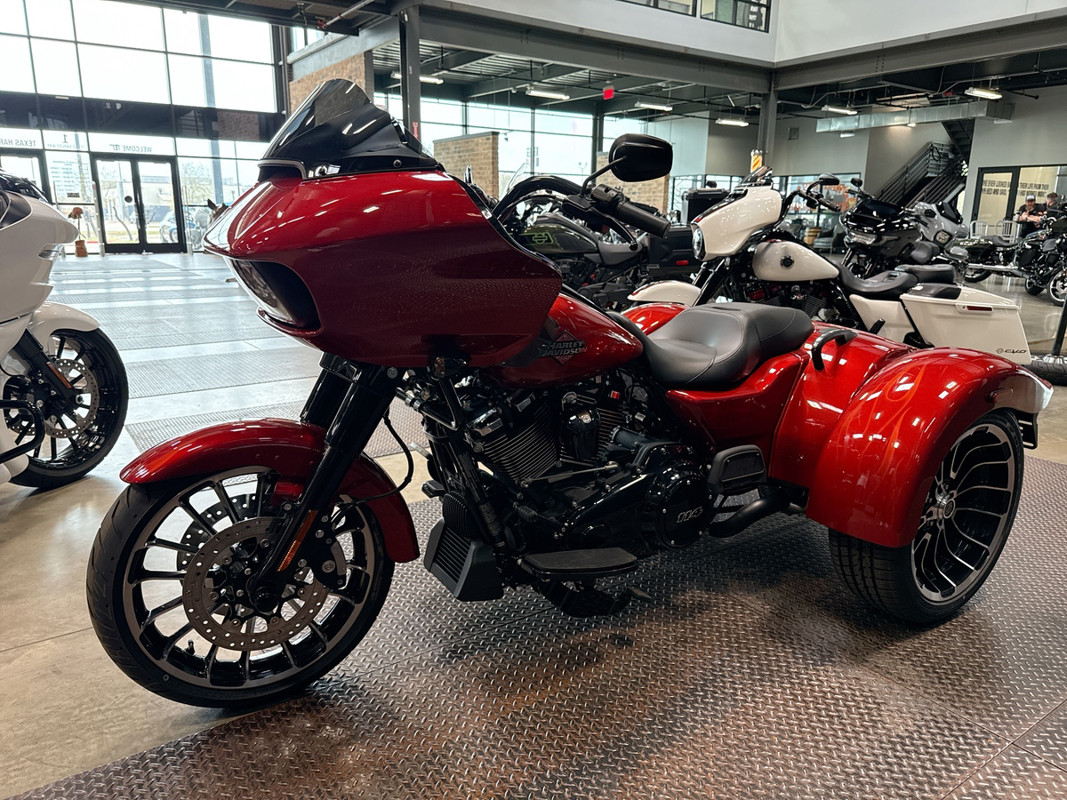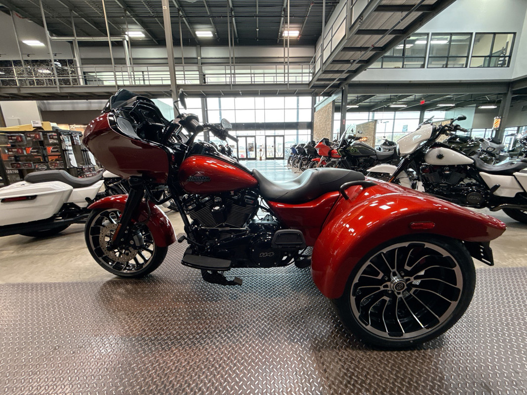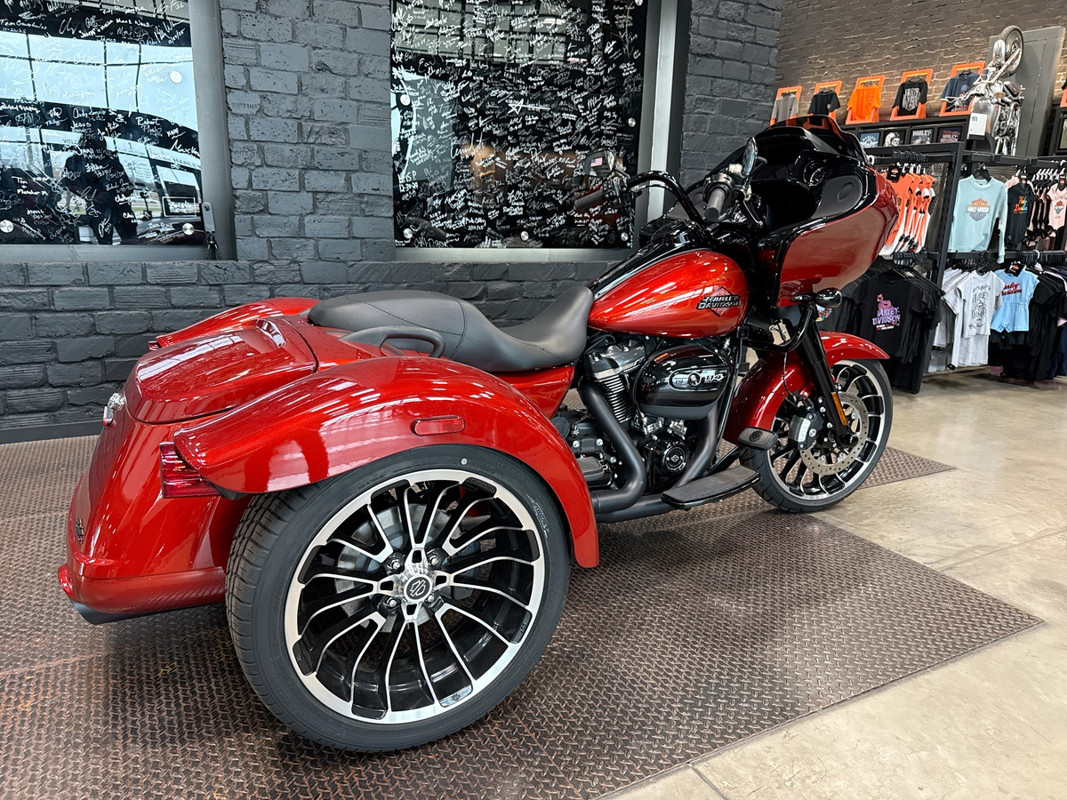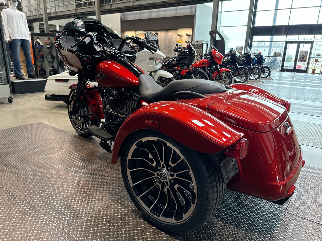 The Road Glide 3 is a unique blend of chrome accents complementing blacked-out details, creating a personalized and custom feel that's all your own. Its three-wheel stability offers confidence without sacrificing the authentic Harley attitude and spirit of freedom.