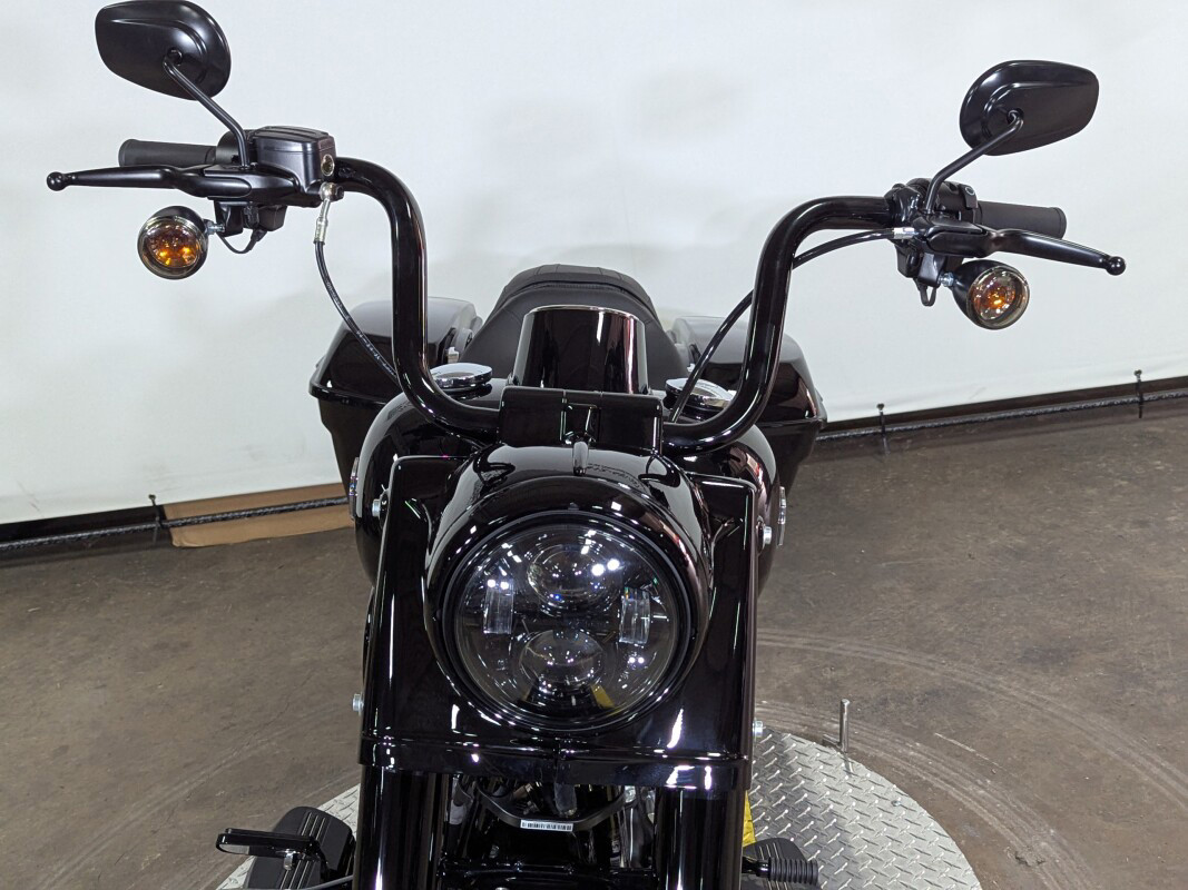 Drenched in black from headlamp to exhaust tips, the 2025 Road King Special has custom bagger style with touring comfort and capability. Its fairing-free design, mini “ape hanger” handlebars, Milwaukee-Eight 114 V-twin engine, and subtly integrated tech ensure you get the most out of every ride.