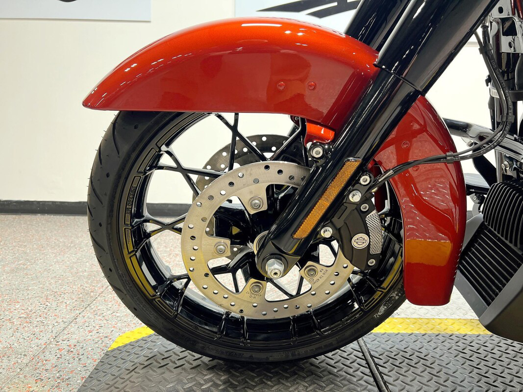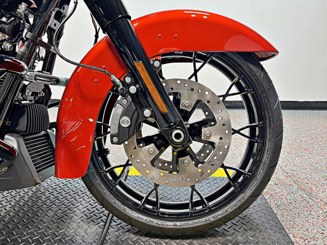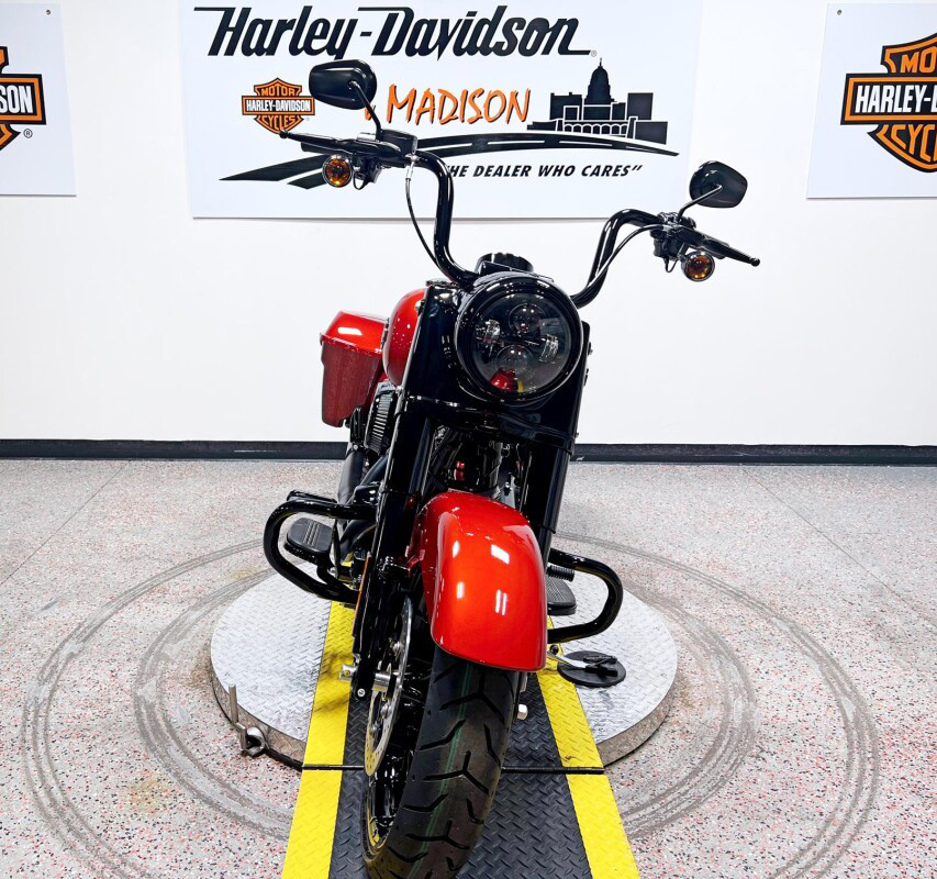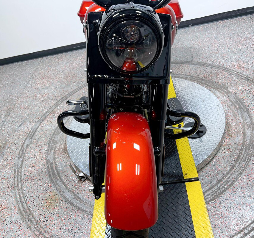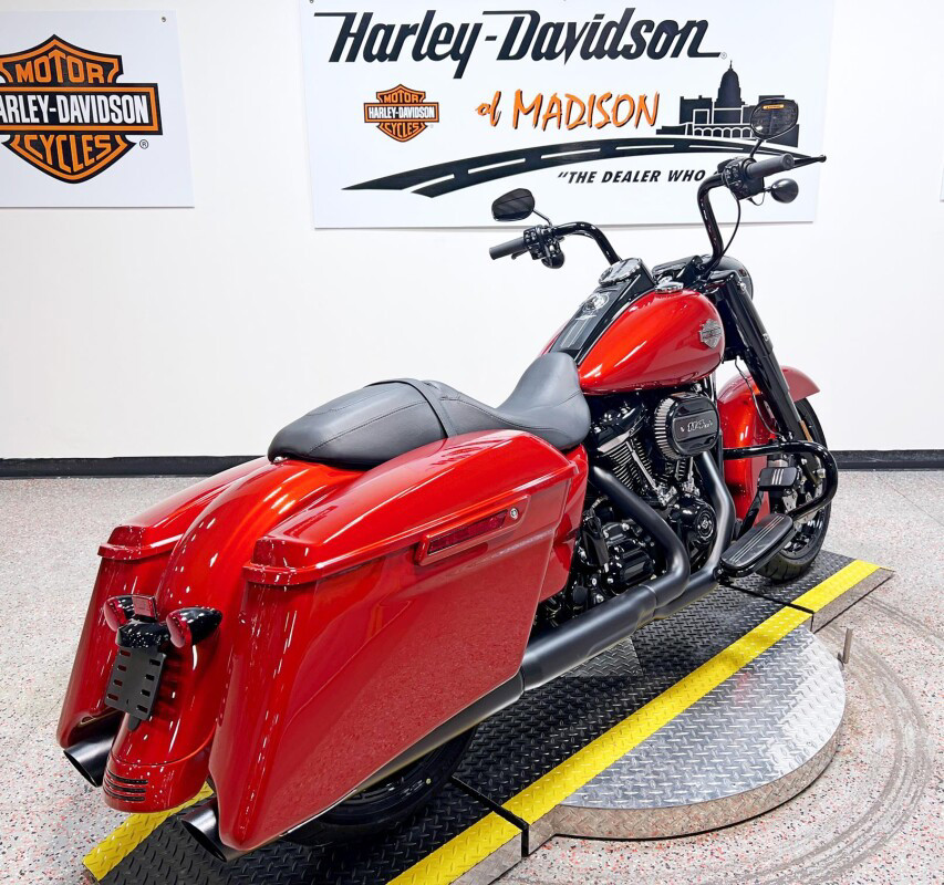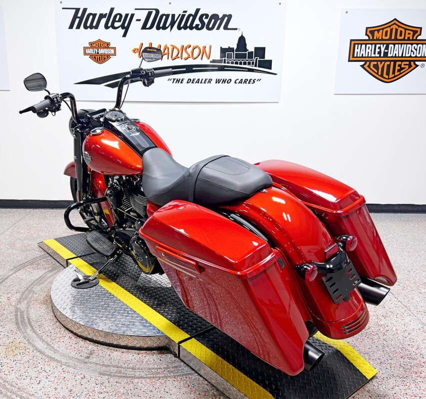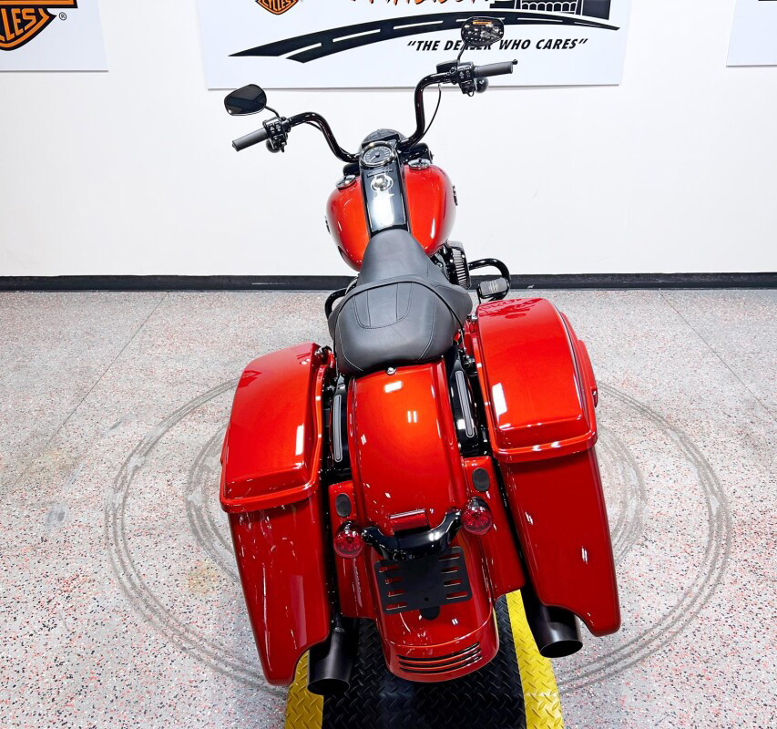 Bold, blacked-out styling meets serious touring performance in the 2025 Road King Special. Built around the Milwaukee-Eight 114 V-Twin engine, this machine delivers commanding power and smooth throttle response for long-haul comfort and spirited rides. Featuring a fairing-free silhouette and mini “ape hanger” handlebars, it offers that raw bagger attitude while still empowering confident control. Stretched saddlebags combine a sleek profile with practical storage, and high-performance components, like premium brakes and adjustable suspension, deliver modern refinement. From its gloss and matte black finishes to its refined ergonomics, the Road King Special is the ideal choice for riders who demand strong performance, bold styling, and true freedom on every mile.
