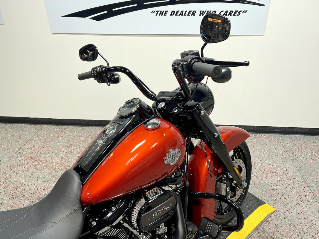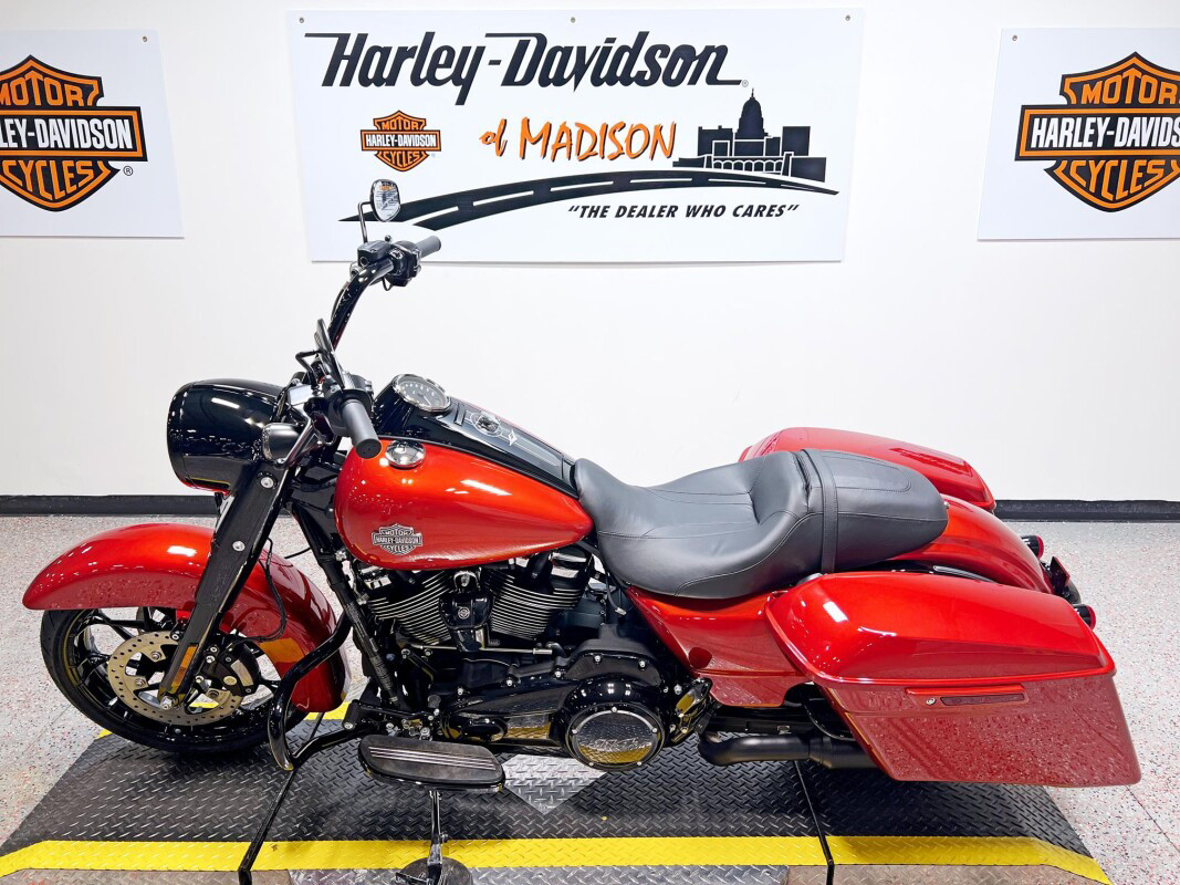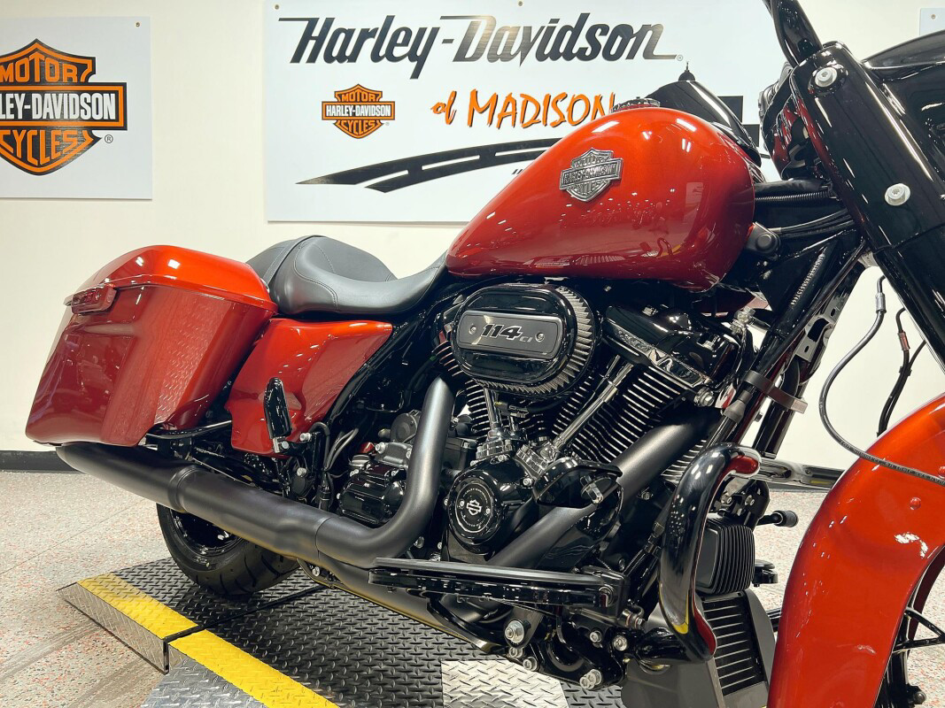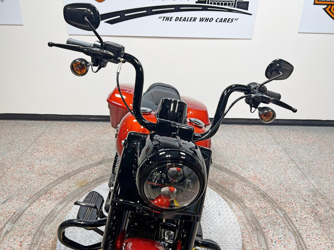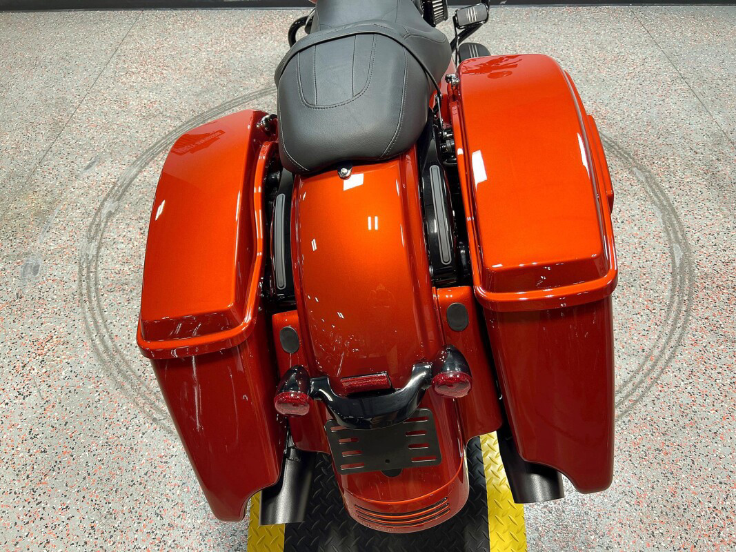 Bold, blacked-out styling meets serious touring performance in the 2025 Road King Special. Built around the Milwaukee-Eight 114 V-Twin engine, this machine delivers commanding power and smooth throttle response for long-haul comfort and spirited rides. Featuring a fairing-free silhouette and mini “ape hanger” handlebars, it offers that raw bagger attitude while still empowering confident control. Stretched saddlebags combine a sleek profile with practical storage, and high-performance components, like premium brakes and adjustable suspension, deliver modern refinement. From its gloss and matte black finishes to its refined ergonomics, the Road King Special is the ideal choice for riders who demand strong performance, bold styling, and true freedom on every mile.