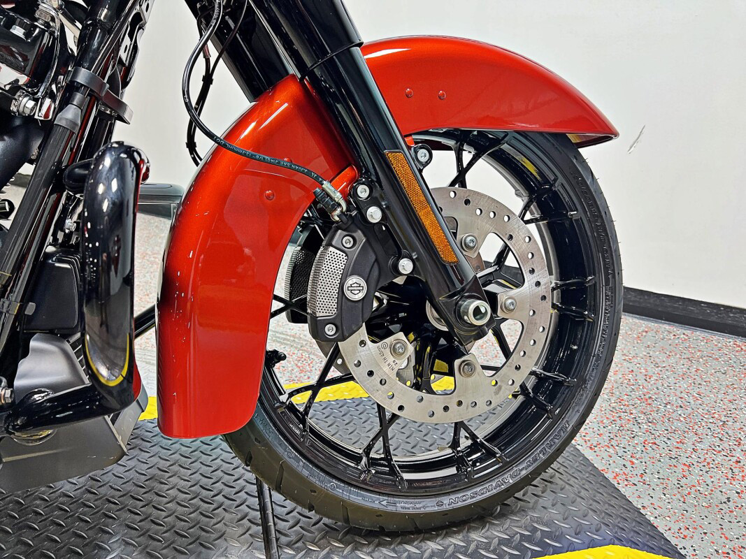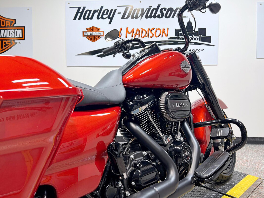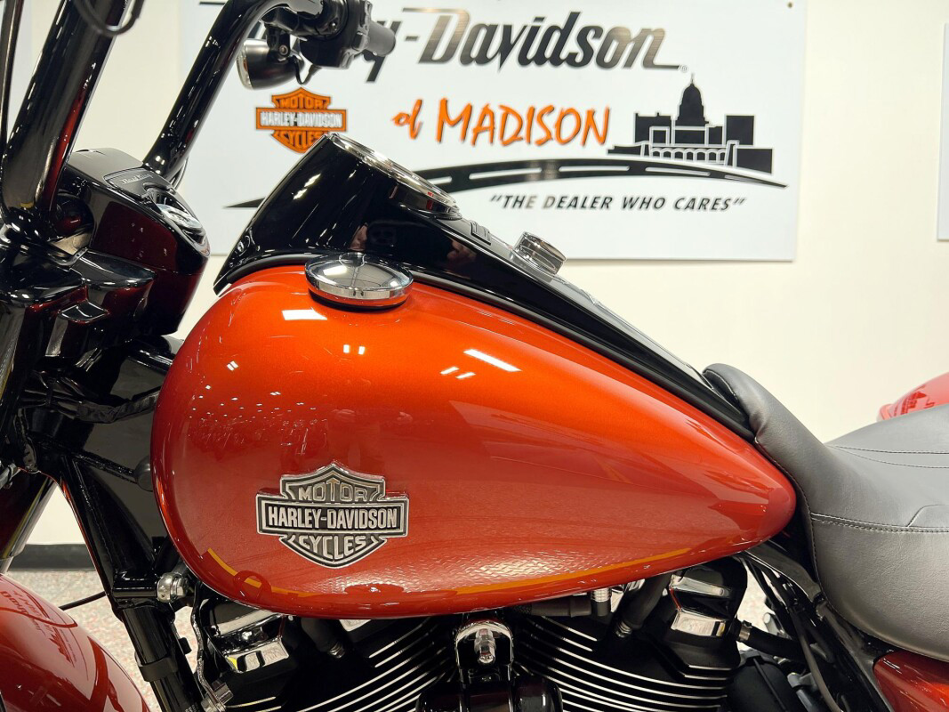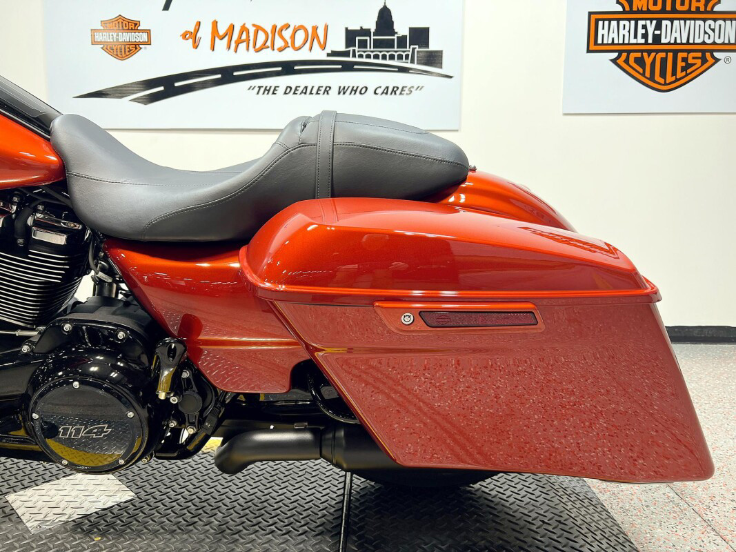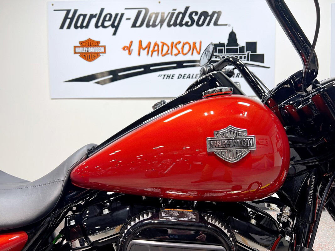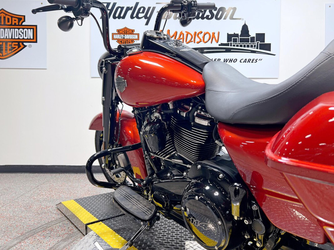 Bold, blacked-out styling meets serious touring performance in the 2025 Road King Special. Built around the Milwaukee-Eight 114 V-Twin engine, this machine delivers commanding power and smooth throttle response for long-haul comfort and spirited rides. Featuring a fairing-free silhouette and mini “ape hanger” handlebars, it offers that raw bagger attitude while still empowering confident control. Stretched saddlebags combine a sleek profile with practical storage, and high-performance components, like premium brakes and adjustable suspension, deliver modern refinement. From its gloss and matte black finishes to its refined ergonomics, the Road King Special is the ideal choice for riders who demand strong performance, bold styling, and true freedom on every mile.