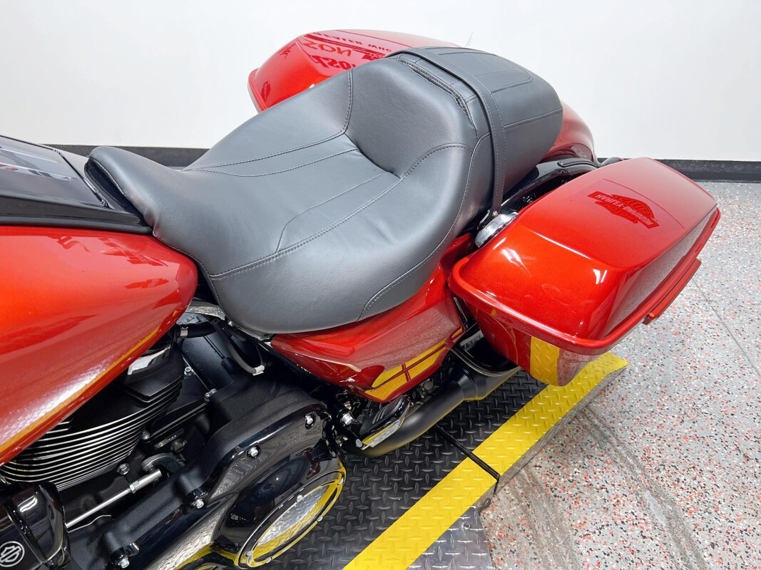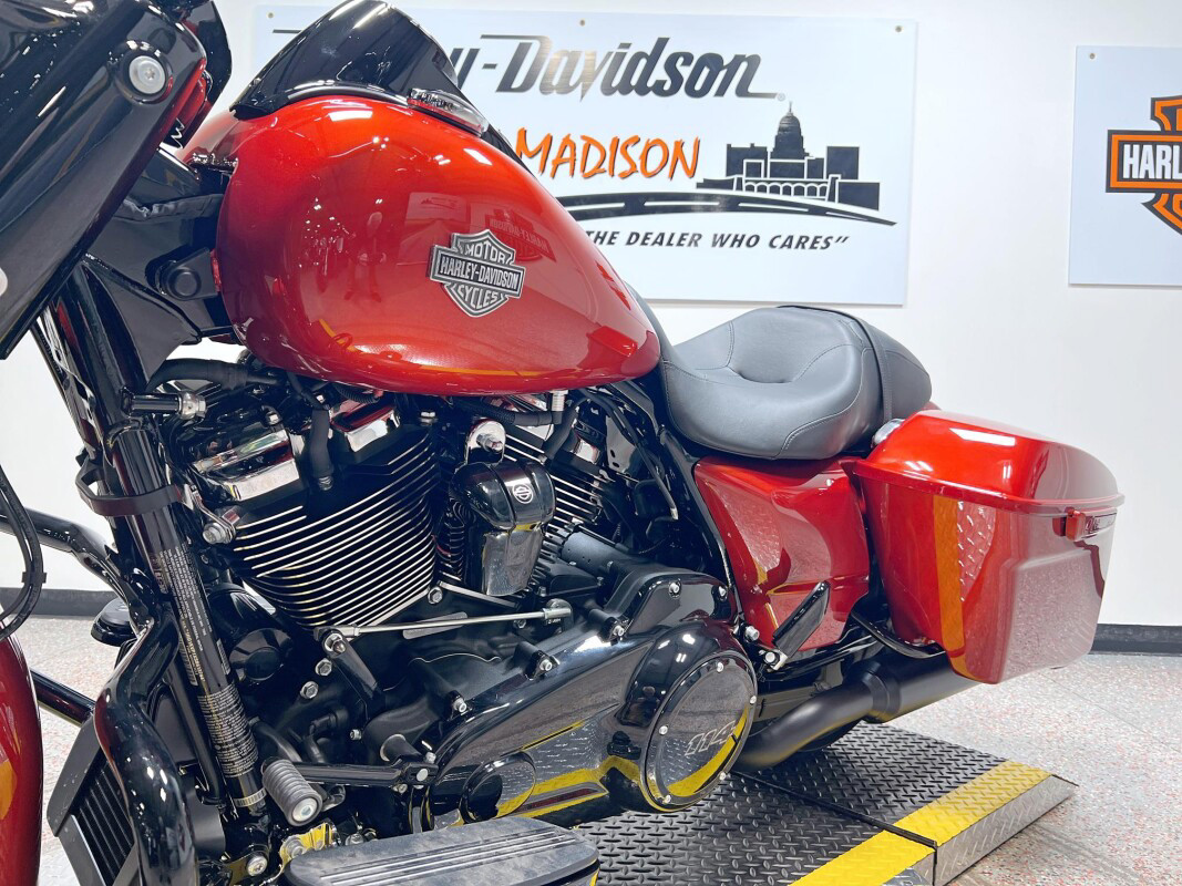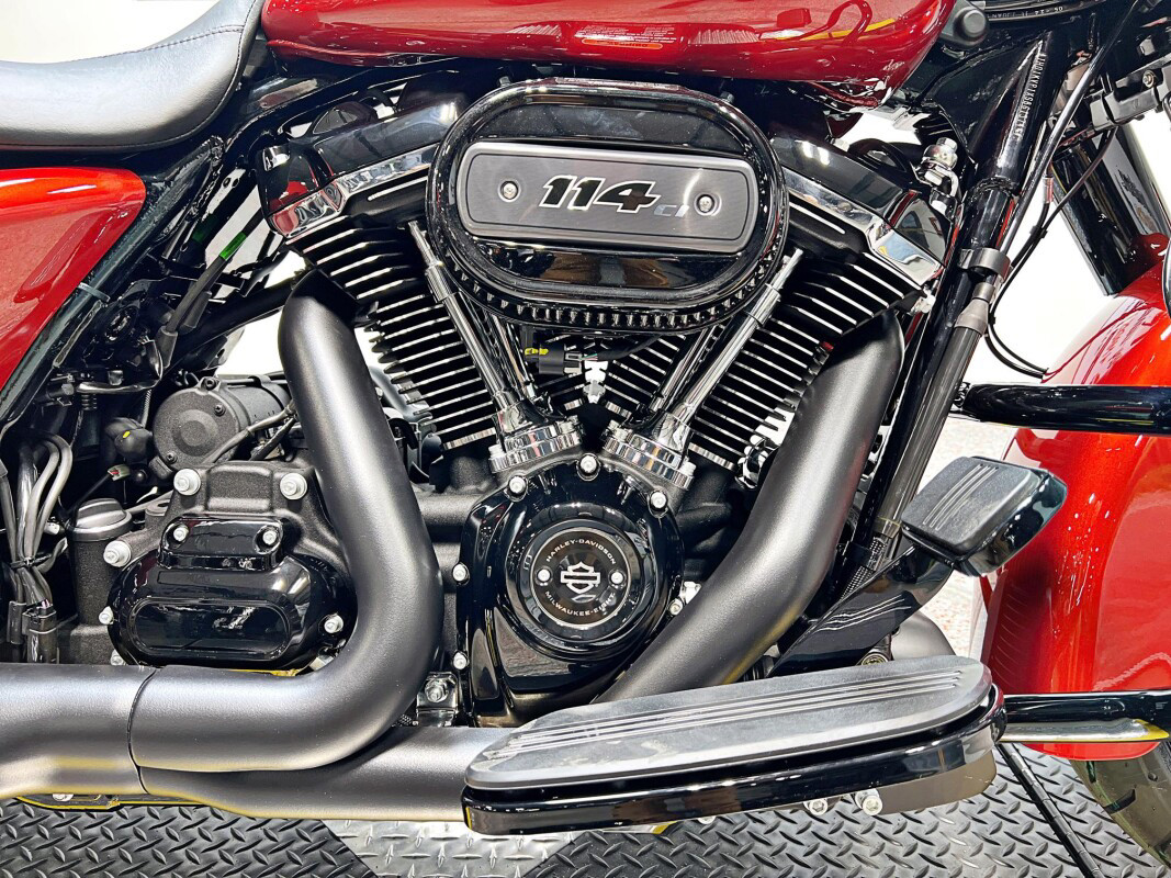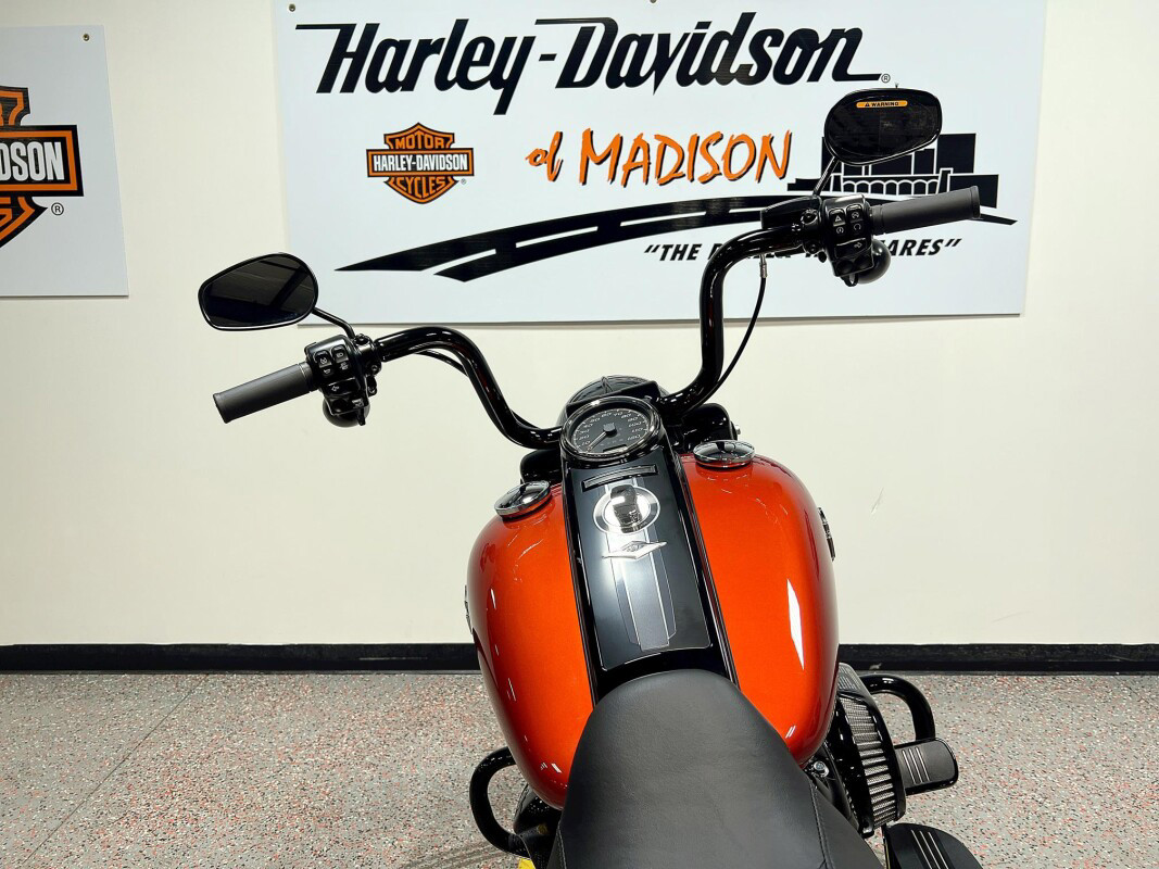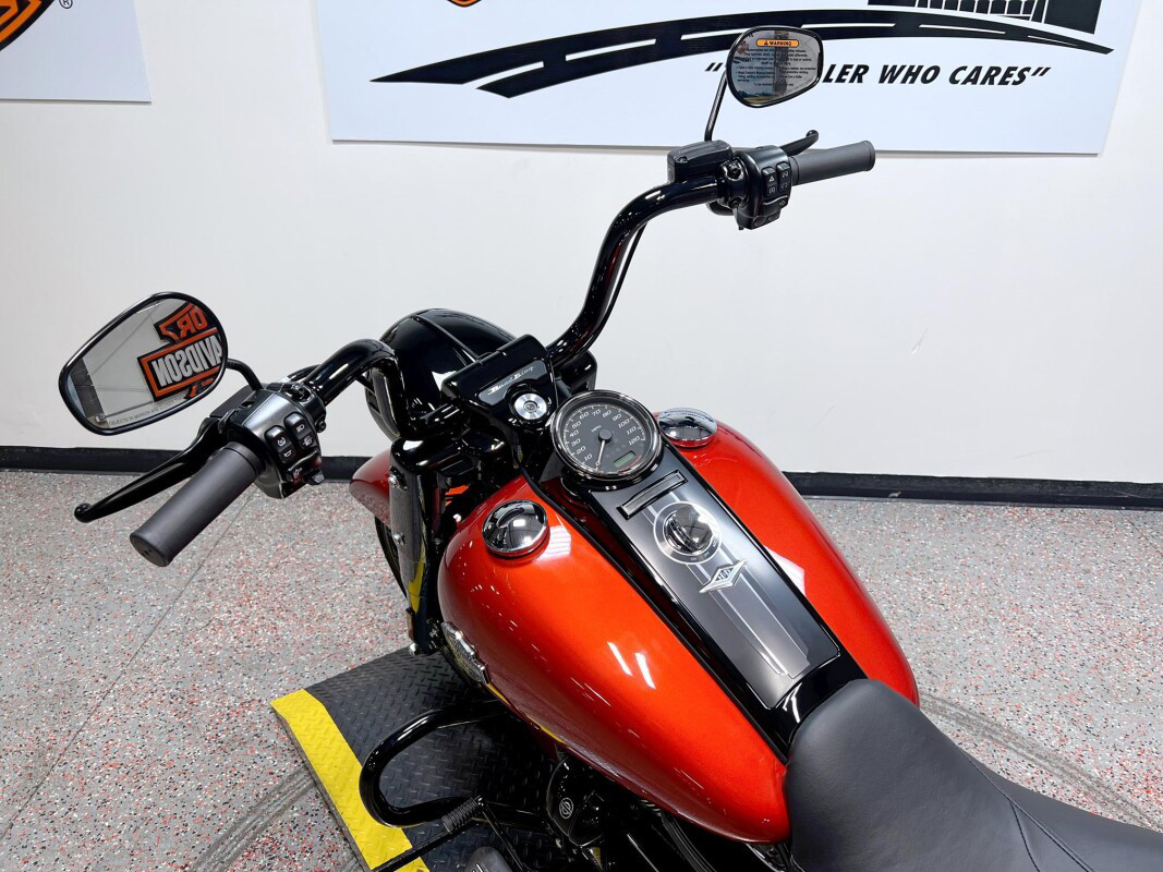 Bold, blacked-out styling meets serious touring performance in the 2025 Road King Special. Built around the Milwaukee-Eight 114 V-Twin engine, this machine delivers commanding power and smooth throttle response for long-haul comfort and spirited rides. Featuring a fairing-free silhouette and mini “ape hanger” handlebars, it offers that raw bagger attitude while still empowering confident control. Stretched saddlebags combine a sleek profile with practical storage, and high-performance components, like premium brakes and adjustable suspension, deliver modern refinement. From its gloss and matte black finishes to its refined ergonomics, the Road King Special is the ideal choice for riders who demand strong performance, bold styling, and true freedom on every mile.