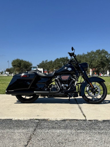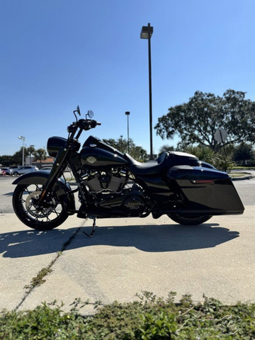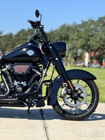 Upgraded to a Screaming Eagle Stage II engine, Slip-ons and Saddle Bag Sound System!! 2025 Harley-Davidson® Road King® SpecialFeatures may include:DESIGNThe stripped-down bagger silhouette with stretched bags, deep black finishes, and comfortably commanding ergonomics.Blacked-Out StylingBlacked-out powertrain is built with a mixture of gloss and matte finishes to provide depth and texture.SaddlebagsStretched saddlebags provide added storage and a smooth line that flows with the blacked-out exhaust system.Mini-Ape HandlebarsMini-Apes put the rider in an upright, commanding stance with a range of adjustability to personalize height and reach.PERFORMANCEMilwaukee-Eight® power optimized with a high-performance air cleaner and a high-flowing, two-into two exhaust, backed by high-performance Brembo brakes and SHOWA® suspension.Milwaukee-Eight® 114 V-Twin EngineAs versatile as it is powerful, the Milwaukee-Eight® 114 V-twin engine is tuned to deliver peak torque in the low revs for rapid acceleration and churn out plenty of horsepower for effortless highway cruising.Brembo BrakesIncredible stopping power with direct feel at the lever and pedal, thanks to top-shelf braking components developed with Brembo.High-Performance Air CleanerHigh-performance ribbed air cleaner with an exposed filter allows more air to pass through, improving engine response and performance.INNOVATIONSet your speed and relax with easily managed Cruise Control as a standard feature.