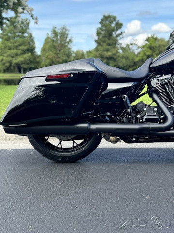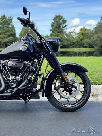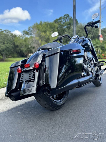 2025 Harley-Davidson® Road King® SpecialFeatures may include:DESIGNThe stripped-down bagger silhouette with stretched bags, deep black finishes, and comfortably commanding ergonomics.Blacked-Out StylingBlacked-out powertrain is built with a mixture of gloss and matte finishes to provide depth and texture.SaddlebagsStretched saddlebags provide added storage and a smooth line that flows with the blacked-out exhaust system.Mini-Ape HandlebarsMini-Apes put the rider in an upright, commanding stance with a range of adjustability to personalize height and reach.PERFORMANCEMilwaukee-Eight® power optimized with a high-performance air cleaner and a high-flowing, two-into two exhaust, backed by high-performance Brembo brakes and SHOWA® suspension.Milwaukee-Eight® 114 V-Twin EngineAs versatile as it is powerful, the Milwaukee-Eight® 114 V-twin engine is tuned to deliver peak torque in the low revs for rapid acceleration and churn out plenty of horsepower for effortless highway cruising.Brembo BrakesIncredible stopping power with direct feel at the lever and pedal, thanks to top-shelf braking components developed with Brembo.High-Performance Air CleanerHigh-performance ribbed air cleaner with an exposed filter allows more air to pass through, improving engine response and performance.INNOVATIONSet your speed and relax with easily managed Cruise Control as a standard feature.