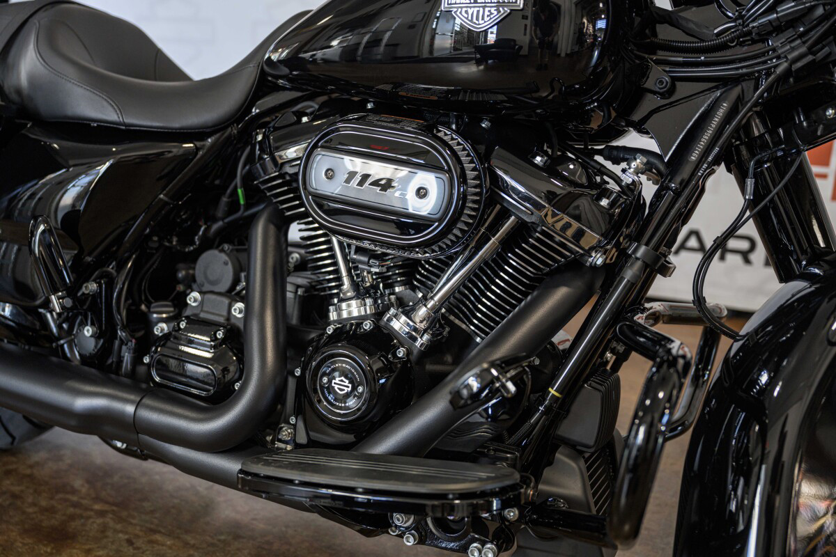 Drenched in black from headlamp to exhaust tips, the 2025 Road King Special has custom bagger style with touring comfort and capability. Its fairing-free design, mini “ape hanger” handlebars, Milwaukee-Eight 114 V-twin engine, and subtly integrated tech ensure you get the most out of every ride.