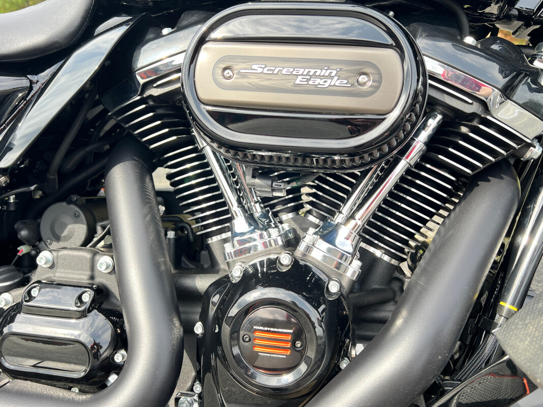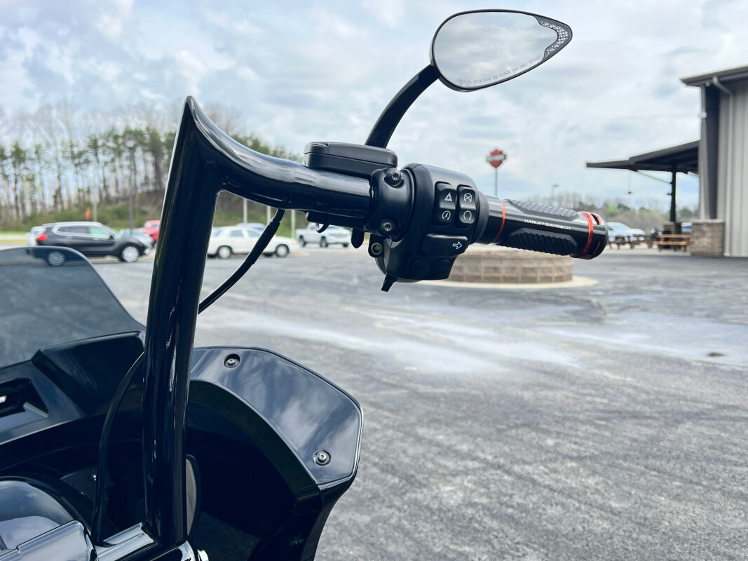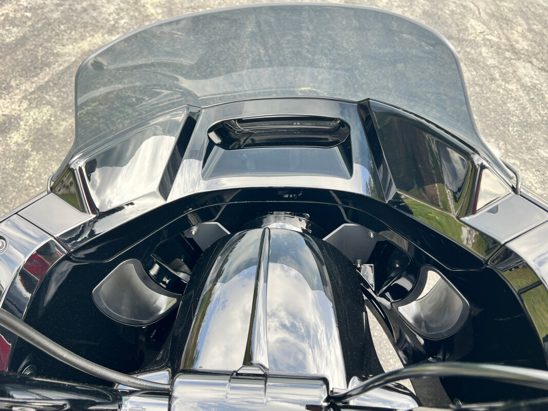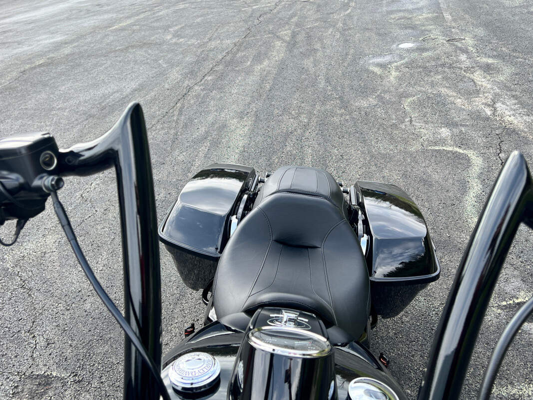 Drenched in black from headlamp to exhaust tips, the 2025 Road King Special has custom bagger style with touring comfort and capability. Its fairing-free design, mini “ape hanger” handlebars, Milwaukee-Eight 114 V-twin engine, and subtly integrated tech ensure you get the most out of every ride.