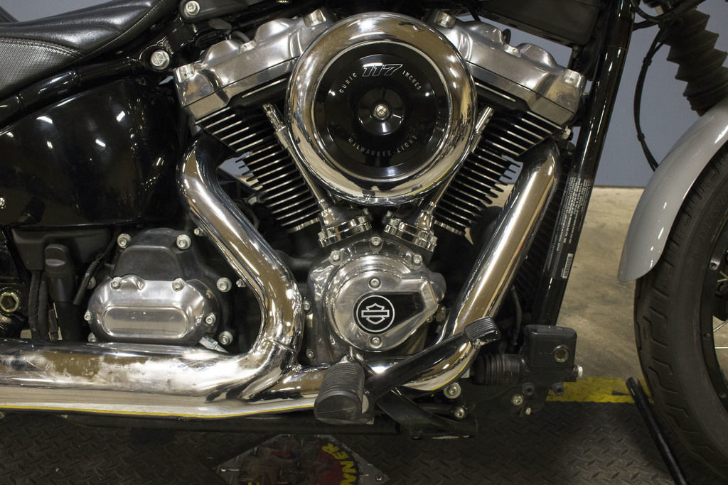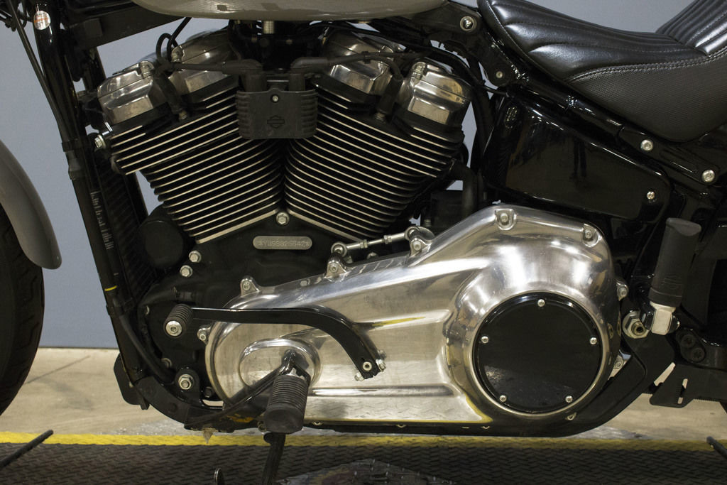 Now available with blacked-out, cast Annihilator wheels or new tubeless laced wheels. A 19-inch front wheel with 16-inch rear delivers a classic bobber silhouette.