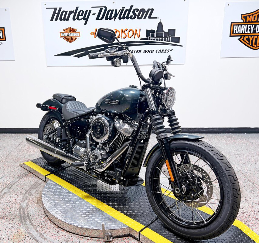 The 2025 Harley-Davidson Street Bob delivers raw bobber attitude wrapped in modern power and precision. Under its slender frame lies the Milwaukee-Eight 117 Classic V-Twin, producing strong torque for instant response when you twist the throttle. With mini-ape handlebars, mid-mounted foot controls, and a chopped rear fender, this ride screams custom-style right from the factory. LED lighting, tubeless laced wheels with TPMS, and selectable ride modes bring high-tech comfort to the brawny silhouette. The lightweight Softail chassis keeps it agile in city traffic while still composed on the open road. With minimalist styling, a 25.8-inch seat height, and premium finishes, the Street Bob is built for riders who want serious performance without losing the spirit of the bobber.