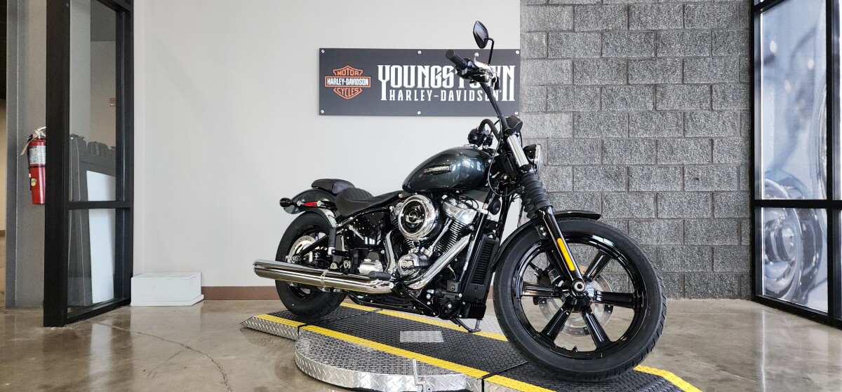 The Street Bob is a lean, mean bobber with mini-ape handlebars, mid-mounted foot controls, and a massive Milwaukee-Eight 117 Classic V-twin, which makes the slim-but-tough Softail quicker than ever.