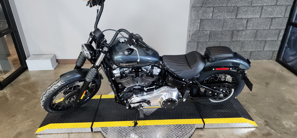 The Street Bob is a lean, mean bobber with mini-ape handlebars, mid-mounted foot controls, and a massive Milwaukee-Eight 117 Classic V-twin, which makes the slim-but-tough Softail quicker than ever.