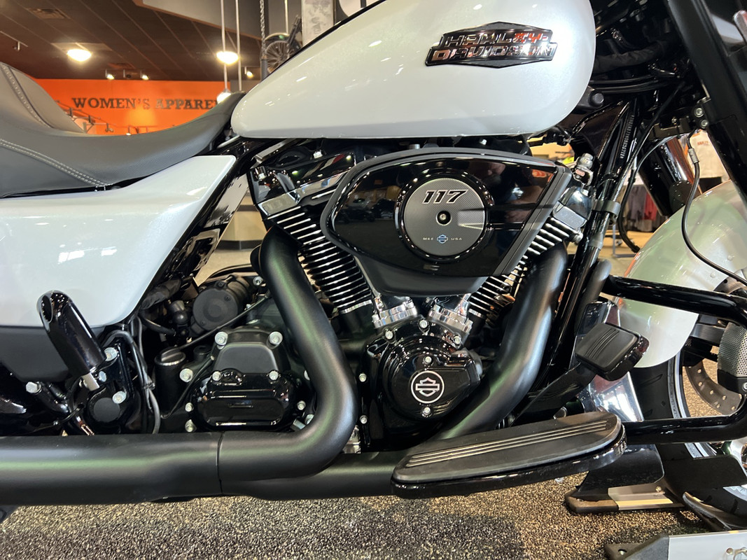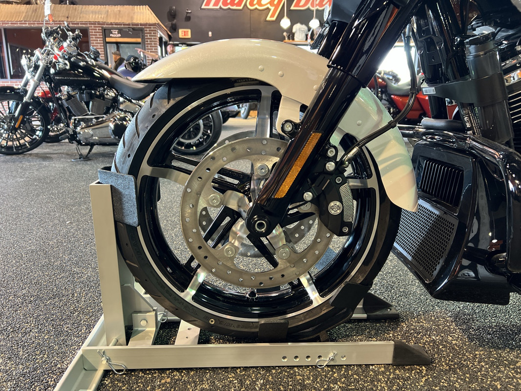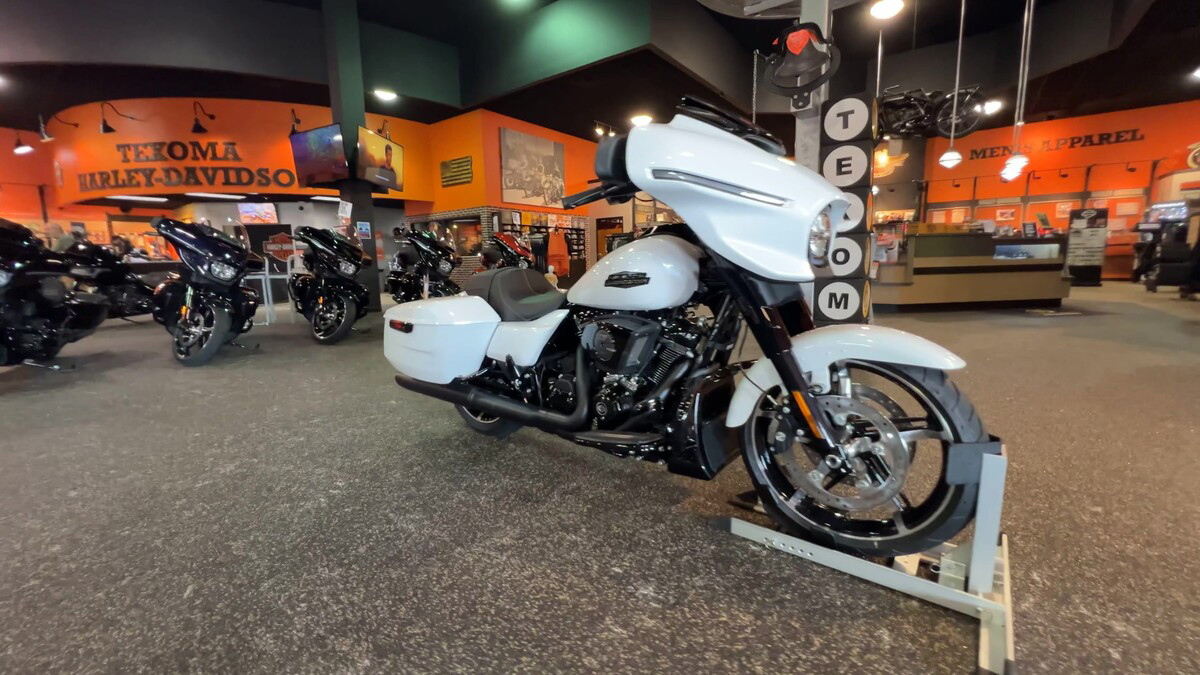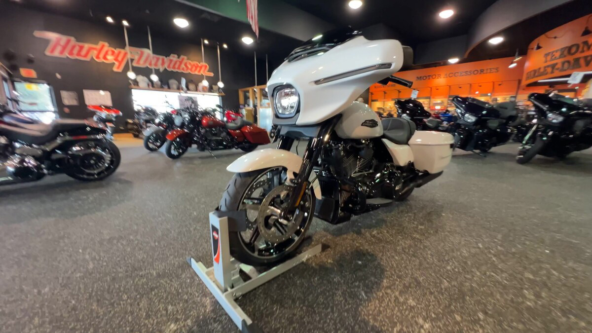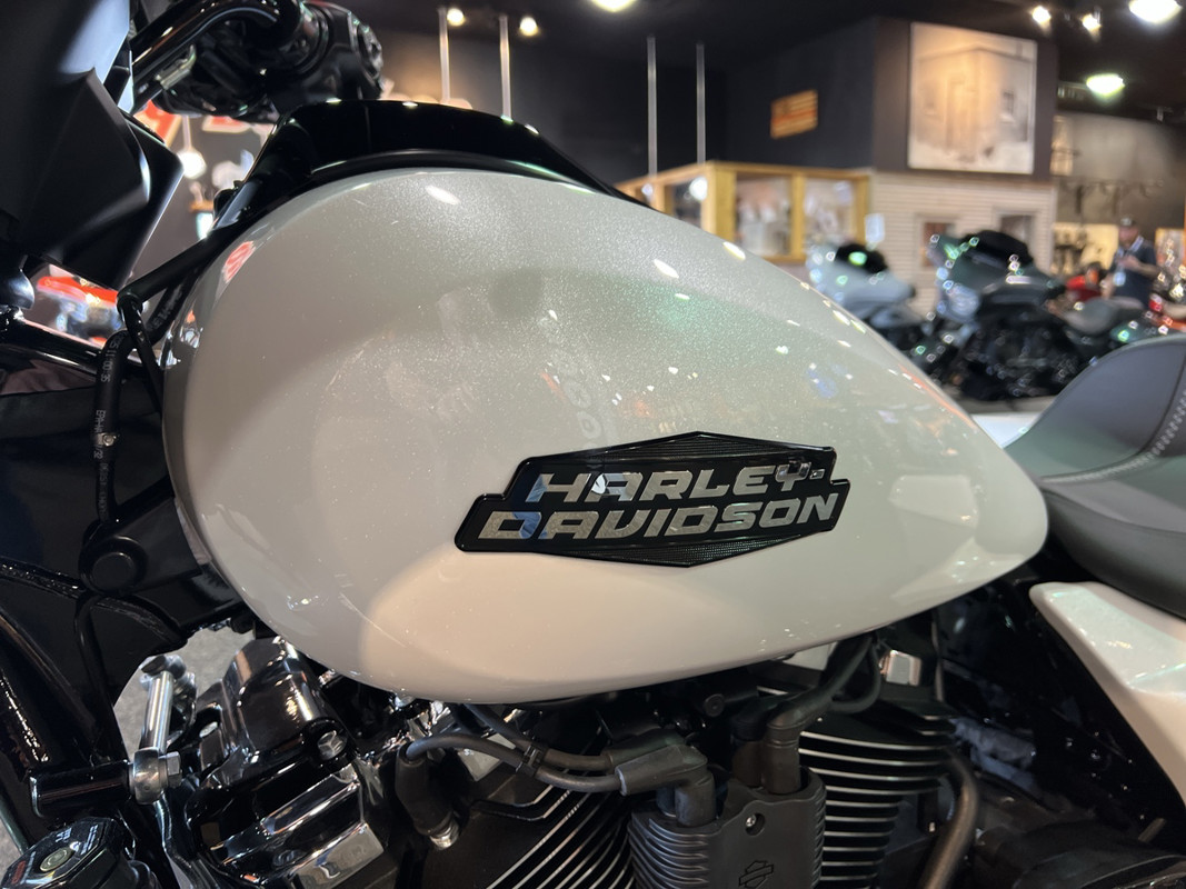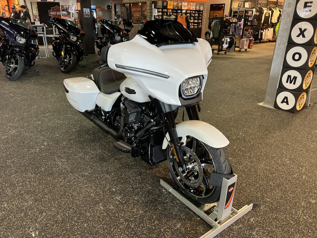 The exterior of the Street Glide Touring is finished in a stunning White Onyx Pearl, a color that exudes elegance and sophistication. This pristine shade is complemented by the sleek lines and robust build of the motorcycle, making it a head-turner on the road. The bike's design is both aerodynamic and stylish, ensuring it not only looks good but also performs exceptionally well.