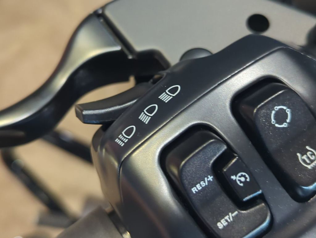 Big V-twin power without the heat. Equipped with liquid-cooled heads and a discrete center-mounted radiator, it ensures efficient cooling even on the hottest rides.