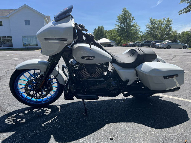 2025 Harley-Davidson® Street Glide®Features may include:DESIGNIconic Batwing fairing has LED lighting seamlessly integrated into its shape and aerodynamics optimized for rider comfort. Blacked-out or polished engine finish options, contrast-cut wheels, and a stunning display of paint options, including three unique Factory Custom styles.FairingThe iconic Batwing fairing has been designed with computational fluid dynamics (CFD) to improve aerodynamics and overall rider comfort, as well as visual flow.LED Signature Lighting LED signature lighting is integrated into the bodywork, providing on-road visibility and creating a sleek, seamless visual flow.Wheels18 inches in the rear and 19 inches in the front, contrast-cut wheels give the Street Glide a powerful stance and modern style while providing excellent on-road performance.PERFORMANCEA powerful Milwaukee-Eight® 117 stays cool with liquid-cooled cylinder heads and breathes easy with a high-flowing intake. Quickly adjustable rear suspension maximizes performance no matter where the road takes you.Milwaukee-Eight® 117 V-Twin EngineBig V-twin power without the heat. Equipped with liquid-cooled heads and a discrete center-mounted radiator, it ensures efficient cooling even on the hottest rides.Rear SuspensionEasily adjust preload for passenger or luggage, maximizing comfort and performance in every setting.Performance IntakeHigh-performance touring intake increases internal volume for improved airflow and engine performance.INNOVATIONThe classic look of the Street Glide boasts a world of modern tech and innovation, with comfort features designed to keep you riding as long as you want.12.3-Inch TFT DisplayThe crystal-clear, 12.3-inch touchscreen color TFT display puts navigation and infotainment at your fingertips.Ride ModesThree pre-programmed ride modes allow you to change the Street Glide’s personality with the push of a button. Change from Road to Sport to Rain, or use the customizable mode to dial in your exact tuning preference.AudioThe deep lows, clean mids, and crips highs of your favorite songs play through fairing-mounted speakers, powered by a 200-watt, four-channel amplifier rated at 50 watts per channel.