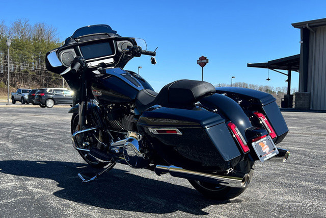 2025 Harley-Davidson® Street Glide®Features may include:DESIGNIconic Batwing fairing has LED lighting seamlessly integrated into its shape and aerodynamics optimized for rider comfort. Blacked-out or polished engine finish options, contrast-cut wheels, and a stunning display of paint options, including three unique Factory Custom styles.FairingThe iconic Batwing fairing has been designed with computational fluid dynamics (CFD) to improve aerodynamics and overall rider comfort, as well as visual flow.LED Signature Lighting LED signature lighting is integrated into the bodywork, providing on-road visibility and creating a sleek, seamless visual flow.Wheels18 inches in the rear and 19 inches in the front, contrast-cut wheels give the Street Glide a powerful stance and modern style while providing excellent on-road performance.PERFORMANCEA powerful Milwaukee-Eight® 117 stays cool with liquid-cooled cylinder heads and breathes easy with a high-flowing intake. Quickly adjustable rear suspension maximizes performance no matter where the road takes you.Milwaukee-Eight® 117 V-Twin EngineBig V-twin power without the heat. Equipped with liquid-cooled heads and a discrete center-mounted radiator, it ensures efficient cooling even on the hottest rides.Rear SuspensionEasily adjust preload for passenger or luggage, maximizing comfort and performance in every setting.Performance IntakeHigh-performance touring intake increases internal volume for improved airflow and engine performance.INNOVATIONThe classic look of the Street Glide boasts a world of modern tech and innovation, with comfort features designed to keep you riding as long as you want.12.3-Inch TFT DisplayThe crystal-clear, 12.3-inch touchscreen color TFT display puts navigation and infotainment at your fingertips.Ride ModesThree pre-programmed ride modes allow you to change the Street Glide’s personality with the push of a button. Change from Road to Sport to Rain, or use the customizable mode to dial in your exact tuning preference.AudioThe deep lows, clean mids, and crips highs of your favorite songs play through fairing-mounted speakers, powered by a 200-watt, four-channel amplifier rated at 50 watts per channel.
