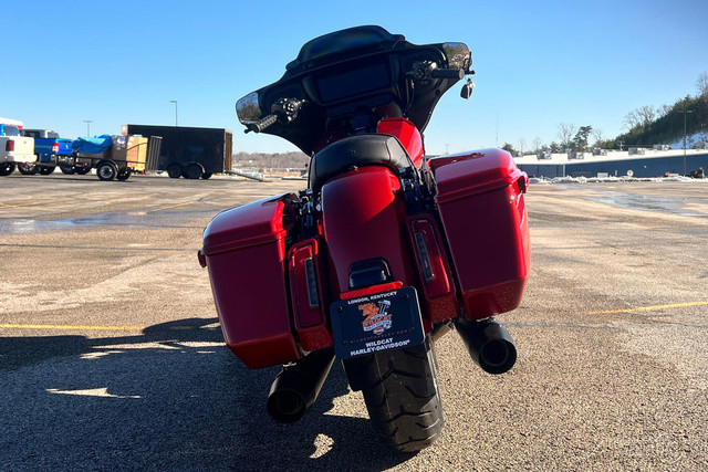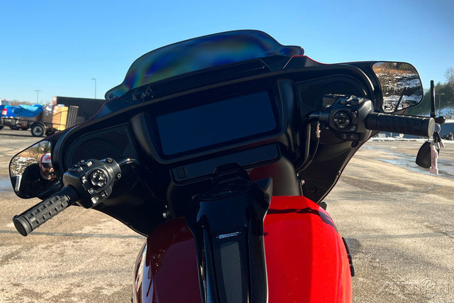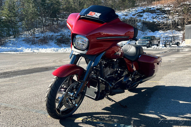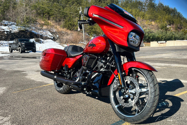 2025 Harley-Davidson® Street Glide®Features may include:DESIGNIconic Batwing fairing has LED lighting seamlessly integrated into its shape and aerodynamics optimized for rider comfort. Blacked-out or polished engine finish options, contrast-cut wheels, and a stunning display of paint options, including three unique Factory Custom styles.FairingThe iconic Batwing fairing has been designed with computational fluid dynamics (CFD) to improve aerodynamics and overall rider comfort, as well as visual flow.LED Signature Lighting LED signature lighting is integrated into the bodywork, providing on-road visibility and creating a sleek, seamless visual flow.Wheels18 inches in the rear and 19 inches in the front, contrast-cut wheels give the Street Glide a powerful stance and modern style while providing excellent on-road performance.PERFORMANCEA powerful Milwaukee-Eight® 117 stays cool with liquid-cooled cylinder heads and breathes easy with a high-flowing intake. Quickly adjustable rear suspension maximizes performance no matter where the road takes you.Milwaukee-Eight® 117 V-Twin EngineBig V-twin power without the heat. Equipped with liquid-cooled heads and a discrete center-mounted radiator, it ensures efficient cooling even on the hottest rides.Rear SuspensionEasily adjust preload for passenger or luggage, maximizing comfort and performance in every setting.Performance IntakeHigh-performance touring intake increases internal volume for improved airflow and engine performance.INNOVATIONThe classic look of the Street Glide boasts a world of modern tech and innovation, with comfort features designed to keep you riding as long as you want.12.3-Inch TFT DisplayThe crystal-clear, 12.3-inch touchscreen color TFT display puts navigation and infotainment at your fingertips.Ride ModesThree pre-programmed ride modes allow you to change the Street Glide’s personality with the push of a button. Change from Road to Sport to Rain, or use the customizable mode to dial in your exact tuning preference.AudioThe deep lows, clean mids, and crips highs of your favorite songs play through fairing-mounted speakers, powered by a 200-watt, four-channel amplifier rated at 50 watts per channel.