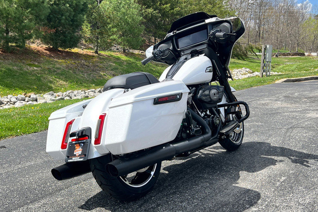 2025 Harley-Davidson® Street Glide®Features may include:DESIGNIconic Batwing fairing has LED lighting seamlessly integrated into its shape and aerodynamics optimized for rider comfort. Blacked-out or polished engine finish options, contrast-cut wheels, and a stunning display of paint options, including three unique Factory Custom styles.FairingThe iconic Batwing fairing has been designed with computational fluid dynamics (CFD) to improve aerodynamics and overall rider comfort, as well as visual flow.LED Signature Lighting LED signature lighting is integrated into the bodywork, providing on-road visibility and creating a sleek, seamless visual flow.Wheels18 inches in the rear and 19 inches in the front, contrast-cut wheels give the Street Glide a powerful stance and modern style while providing excellent on-road performance.PERFORMANCEA powerful Milwaukee-Eight® 117 stays cool with liquid-cooled cylinder heads and breathes easy with a high-flowing intake. Quickly adjustable rear suspension maximizes performance no matter where the road takes you.Milwaukee-Eight® 117 V-Twin EngineBig V-twin power without the heat. Equipped with liquid-cooled heads and a discrete center-mounted radiator, it ensures efficient cooling even on the hottest rides.Rear SuspensionEasily adjust preload for passenger or luggage, maximizing comfort and performance in every setting.Performance IntakeHigh-performance touring intake increases internal volume for improved airflow and engine performance.INNOVATIONThe classic look of the Street Glide boasts a world of modern tech and innovation, with comfort features designed to keep you riding as long as you want.12.3-Inch TFT DisplayThe crystal-clear, 12.3-inch touchscreen color TFT display puts navigation and infotainment at your fingertips.Ride ModesThree pre-programmed ride modes allow you to change the Street Glide’s personality with the push of a button. Change from Road to Sport to Rain, or use the customizable mode to dial in your exact tuning preference.AudioThe deep lows, clean mids, and crips highs of your favorite songs play through fairing-mounted speakers, powered by a 200-watt, four-channel amplifier rated at 50 watts per channel.