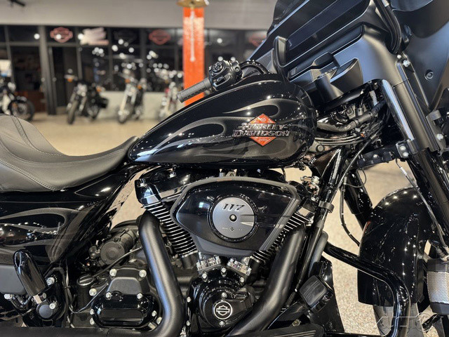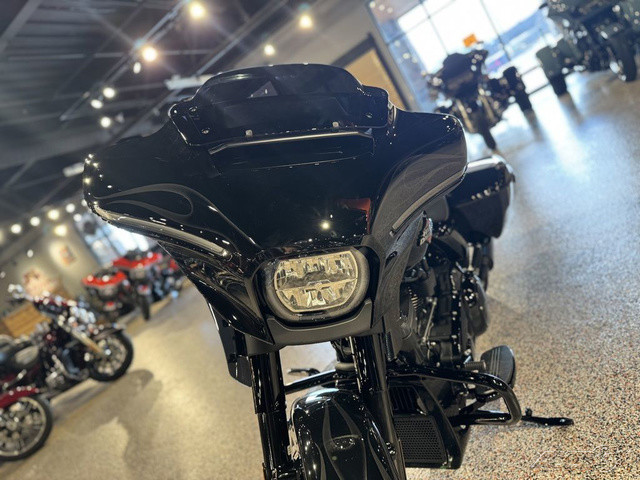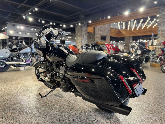 2025 Harley-Davidson® Street Glide®Features may include:DESIGNIconic Batwing fairing has LED lighting seamlessly integrated into its shape and aerodynamics optimized for rider comfort. Blacked-out or polished engine finish options, contrast-cut wheels, and a stunning display of paint options, including three unique Factory Custom styles.FairingThe iconic Batwing fairing has been designed with computational fluid dynamics (CFD) to improve aerodynamics and overall rider comfort, as well as visual flow.LED Signature Lighting LED signature lighting is integrated into the bodywork, providing on-road visibility and creating a sleek, seamless visual flow.Wheels18 inches in the rear and 19 inches in the front, contrast-cut wheels give the Street Glide a powerful stance and modern style while providing excellent on-road performance.PERFORMANCEA powerful Milwaukee-Eight® 117 stays cool with liquid-cooled cylinder heads and breathes easy with a high-flowing intake. Quickly adjustable rear suspension maximizes performance no matter where the road takes you.Milwaukee-Eight® 117 V-Twin EngineBig V-twin power without the heat. Equipped with liquid-cooled heads and a discrete center-mounted radiator, it ensures efficient cooling even on the hottest rides.Rear SuspensionEasily adjust preload for passenger or luggage, maximizing comfort and performance in every setting.Performance IntakeHigh-performance touring intake increases internal volume for improved airflow and engine performance.INNOVATIONThe classic look of the Street Glide boasts a world of modern tech and innovation, with comfort features designed to keep you riding as long as you want.12.3-Inch TFT DisplayThe crystal-clear, 12.3-inch touchscreen color TFT display puts navigation and infotainment at your fingertips.Ride ModesThree pre-programmed ride modes allow you to change the Street Glide’s personality with the push of a button. Change from Road to Sport to Rain, or use the customizable mode to dial in your exact tuning preference.AudioThe deep lows, clean mids, and crips highs of your favorite songs play through fairing-mounted speakers, powered by a 200-watt, four-channel amplifier rated at 50 watts per channel.