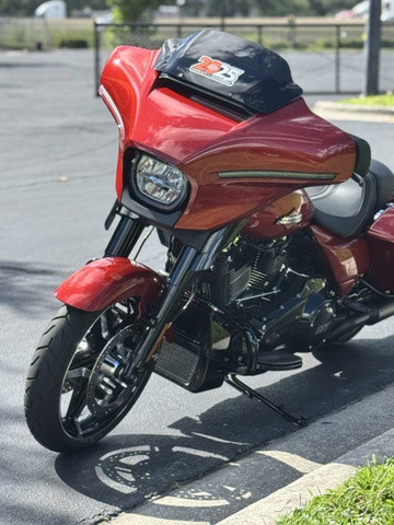 2025 Harley-Davidson® Street Glide®Features may include:DESIGNIconic Batwing fairing has LED lighting seamlessly integrated into its shape and aerodynamics optimized for rider comfort. Blacked-out or polished engine finish options, contrast-cut wheels, and a stunning display of paint options, including three unique Factory Custom styles.FairingThe iconic Batwing fairing has been designed with computational fluid dynamics (CFD) to improve aerodynamics and overall rider comfort, as well as visual flow.LED Signature Lighting LED signature lighting is integrated into the bodywork, providing on-road visibility and creating a sleek, seamless visual flow.Wheels18 inches in the rear and 19 inches in the front, contrast-cut wheels give the Street Glide a powerful stance and modern style while providing excellent on-road performance.PERFORMANCEA powerful Milwaukee-Eight® 117 stays cool with liquid-cooled cylinder heads and breathes easy with a high-flowing intake. Quickly adjustable rear suspension maximizes performance no matter where the road takes you.Milwaukee-Eight® 117 V-Twin EngineBig V-twin power without the heat. Equipped with liquid-cooled heads and a discrete center-mounted radiator, it ensures efficient cooling even on the hottest rides.Rear SuspensionEasily adjust preload for passenger or luggage, maximizing comfort and performance in every setting.Performance IntakeHigh-performance touring intake increases internal volume for improved airflow and engine performance.INNOVATIONThe classic look of the Street Glide boasts a world of modern tech and innovation, with comfort features designed to keep you riding as long as you want.12.3-Inch TFT DisplayThe crystal-clear, 12.3-inch touchscreen color TFT display puts navigation and infotainment at your fingertips.Ride ModesThree pre-programmed ride modes allow you to change the Street Glide’s personality with the push of a button. Change from Road to Sport to Rain, or use the customizable mode to dial in your exact tuning preference.AudioThe deep lows, clean mids, and crips highs of your favorite songs play through fairing-mounted speakers, powered by a 200-watt, four-channel amplifier rated at 50 watts per channel.