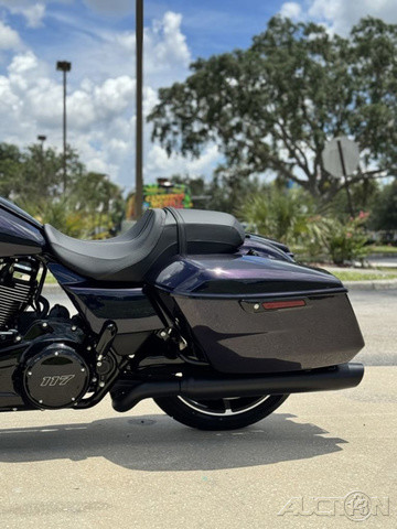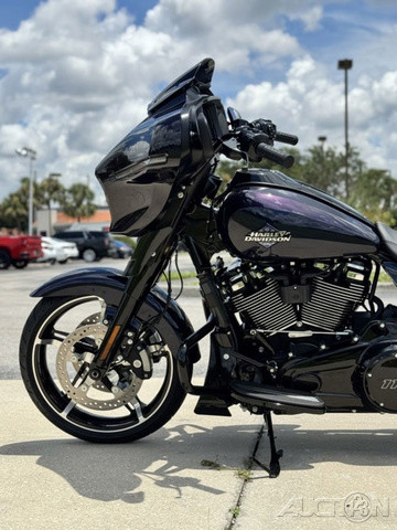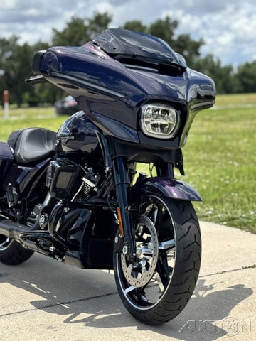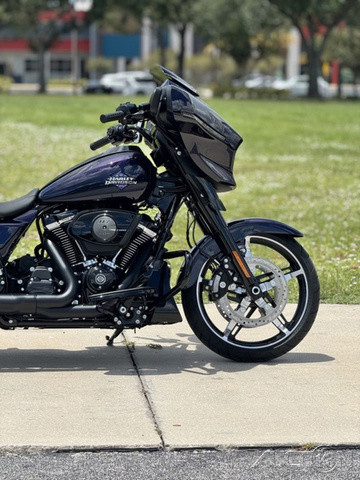 2025 Harley-Davidson® Street Glide®Features may include:DESIGNIconic Batwing fairing has LED lighting seamlessly integrated into its shape and aerodynamics optimized for rider comfort. Blacked-out or polished engine finish options, contrast-cut wheels, and a stunning display of paint options, including three unique Factory Custom styles.FairingThe iconic Batwing fairing has been designed with computational fluid dynamics (CFD) to improve aerodynamics and overall rider comfort, as well as visual flow.LED Signature Lighting LED signature lighting is integrated into the bodywork, providing on-road visibility and creating a sleek, seamless visual flow.Wheels18 inches in the rear and 19 inches in the front, contrast-cut wheels give the Street Glide a powerful stance and modern style while providing excellent on-road performance.PERFORMANCEA powerful Milwaukee-Eight® 117 stays cool with liquid-cooled cylinder heads and breathes easy with a high-flowing intake. Quickly adjustable rear suspension maximizes performance no matter where the road takes you.Milwaukee-Eight® 117 V-Twin EngineBig V-twin power without the heat. Equipped with liquid-cooled heads and a discrete center-mounted radiator, it ensures efficient cooling even on the hottest rides.Rear SuspensionEasily adjust preload for passenger or luggage, maximizing comfort and performance in every setting.Performance IntakeHigh-performance touring intake increases internal volume for improved airflow and engine performance.INNOVATIONThe classic look of the Street Glide boasts a world of modern tech and innovation, with comfort features designed to keep you riding as long as you want.12.3-Inch TFT DisplayThe crystal-clear, 12.3-inch touchscreen color TFT display puts navigation and infotainment at your fingertips.Ride ModesThree pre-programmed ride modes allow you to change the Street Glide’s personality with the push of a button. Change from Road to Sport to Rain, or use the customizable mode to dial in your exact tuning preference.AudioThe deep lows, clean mids, and crips highs of your favorite songs play through fairing-mounted speakers, powered by a 200-watt, four-channel amplifier rated at 50 watts per channel.