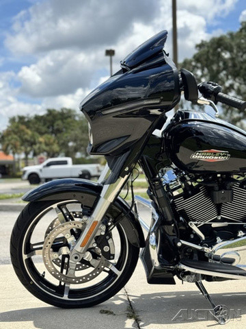 2025 Harley-Davidson® Street Glide®Features may include:DESIGNIconic Batwing fairing has LED lighting seamlessly integrated into its shape and aerodynamics optimized for rider comfort. Blacked-out or polished engine finish options, contrast-cut wheels, and a stunning display of paint options, including three unique Factory Custom styles.FairingThe iconic Batwing fairing has been designed with computational fluid dynamics (CFD) to improve aerodynamics and overall rider comfort, as well as visual flow.LED Signature Lighting LED signature lighting is integrated into the bodywork, providing on-road visibility and creating a sleek, seamless visual flow.Wheels18 inches in the rear and 19 inches in the front, contrast-cut wheels give the Street Glide a powerful stance and modern style while providing excellent on-road performance.PERFORMANCEA powerful Milwaukee-Eight® 117 stays cool with liquid-cooled cylinder heads and breathes easy with a high-flowing intake. Quickly adjustable rear suspension maximizes performance no matter where the road takes you.Milwaukee-Eight® 117 V-Twin EngineBig V-twin power without the heat. Equipped with liquid-cooled heads and a discrete center-mounted radiator, it ensures efficient cooling even on the hottest rides.Rear SuspensionEasily adjust preload for passenger or luggage, maximizing comfort and performance in every setting.Performance IntakeHigh-performance touring intake increases internal volume for improved airflow and engine performance.INNOVATIONThe classic look of the Street Glide boasts a world of modern tech and innovation, with comfort features designed to keep you riding as long as you want.12.3-Inch TFT DisplayThe crystal-clear, 12.3-inch touchscreen color TFT display puts navigation and infotainment at your fingertips.Ride ModesThree pre-programmed ride modes allow you to change the Street Glide’s personality with the push of a button. Change from Road to Sport to Rain, or use the customizable mode to dial in your exact tuning preference.AudioThe deep lows, clean mids, and crips highs of your favorite songs play through fairing-mounted speakers, powered by a 200-watt, four-channel amplifier rated at 50 watts per channel.