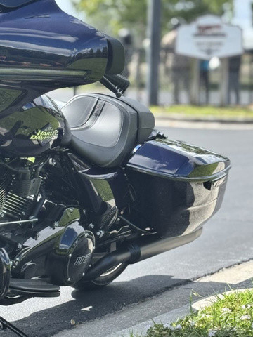 2025 Harley-Davidson® Street Glide®Features may include:DESIGNIconic Batwing fairing has LED lighting seamlessly integrated into its shape and aerodynamics optimized for rider comfort. Blacked-out or polished engine finish options, contrast-cut wheels, and a stunning display of paint options, including three unique Factory Custom styles.FairingThe iconic Batwing fairing has been designed with computational fluid dynamics (CFD) to improve aerodynamics and overall rider comfort, as well as visual flow.LED Signature Lighting LED signature lighting is integrated into the bodywork, providing on-road visibility and creating a sleek, seamless visual flow.Wheels18 inches in the rear and 19 inches in the front, contrast-cut wheels give the Street Glide a powerful stance and modern style while providing excellent on-road performance.PERFORMANCEA powerful Milwaukee-Eight® 117 stays cool with liquid-cooled cylinder heads and breathes easy with a high-flowing intake. Quickly adjustable rear suspension maximizes performance no matter where the road takes you.Milwaukee-Eight® 117 V-Twin EngineBig V-twin power without the heat. Equipped with liquid-cooled heads and a discrete center-mounted radiator, it ensures efficient cooling even on the hottest rides.Rear SuspensionEasily adjust preload for passenger or luggage, maximizing comfort and performance in every setting.Performance IntakeHigh-performance touring intake increases internal volume for improved airflow and engine performance.INNOVATIONThe classic look of the Street Glide boasts a world of modern tech and innovation, with comfort features designed to keep you riding as long as you want.12.3-Inch TFT DisplayThe crystal-clear, 12.3-inch touchscreen color TFT display puts navigation and infotainment at your fingertips.Ride ModesThree pre-programmed ride modes allow you to change the Street Glide’s personality with the push of a button. Change from Road to Sport to Rain, or use the customizable mode to dial in your exact tuning preference.AudioThe deep lows, clean mids, and crips highs of your favorite songs play through fairing-mounted speakers, powered by a 200-watt, four-channel amplifier rated at 50 watts per channel.