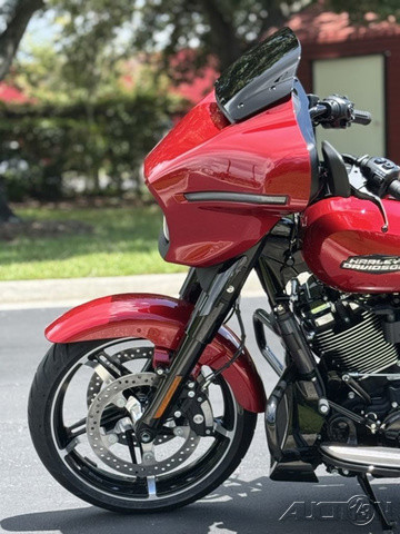 2025 Harley-Davidson® Street Glide®Features may include:DESIGNIconic Batwing fairing has LED lighting seamlessly integrated into its shape and aerodynamics optimized for rider comfort. Blacked-out or polished engine finish options, contrast-cut wheels, and a stunning display of paint options, including three unique Factory Custom styles.FairingThe iconic Batwing fairing has been designed with computational fluid dynamics (CFD) to improve aerodynamics and overall rider comfort, as well as visual flow.LED Signature Lighting LED signature lighting is integrated into the bodywork, providing on-road visibility and creating a sleek, seamless visual flow.Wheels18 inches in the rear and 19 inches in the front, contrast-cut wheels give the Street Glide a powerful stance and modern style while providing excellent on-road performance.PERFORMANCEA powerful Milwaukee-Eight® 117 stays cool with liquid-cooled cylinder heads and breathes easy with a high-flowing intake. Quickly adjustable rear suspension maximizes performance no matter where the road takes you.Milwaukee-Eight® 117 V-Twin EngineBig V-twin power without the heat. Equipped with liquid-cooled heads and a discrete center-mounted radiator, it ensures efficient cooling even on the hottest rides.Rear SuspensionEasily adjust preload for passenger or luggage, maximizing comfort and performance in every setting.Performance IntakeHigh-performance touring intake increases internal volume for improved airflow and engine performance.INNOVATIONThe classic look of the Street Glide boasts a world of modern tech and innovation, with comfort features designed to keep you riding as long as you want.12.3-Inch TFT DisplayThe crystal-clear, 12.3-inch touchscreen color TFT display puts navigation and infotainment at your fingertips.Ride ModesThree pre-programmed ride modes allow you to change the Street Glide’s personality with the push of a button. Change from Road to Sport to Rain, or use the customizable mode to dial in your exact tuning preference.AudioThe deep lows, clean mids, and crips highs of your favorite songs play through fairing-mounted speakers, powered by a 200-watt, four-channel amplifier rated at 50 watts per channel.