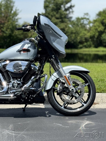 2025 Harley-Davidson® Street Glide®Features may include:DESIGNIconic Batwing fairing has LED lighting seamlessly integrated into its shape and aerodynamics optimized for rider comfort. Blacked-out or polished engine finish options, contrast-cut wheels, and a stunning display of paint options, including three unique Factory Custom styles.FairingThe iconic Batwing fairing has been designed with computational fluid dynamics (CFD) to improve aerodynamics and overall rider comfort, as well as visual flow.LED Signature Lighting LED signature lighting is integrated into the bodywork, providing on-road visibility and creating a sleek, seamless visual flow.Wheels18 inches in the rear and 19 inches in the front, contrast-cut wheels give the Street Glide a powerful stance and modern style while providing excellent on-road performance.PERFORMANCEA powerful Milwaukee-Eight® 117 stays cool with liquid-cooled cylinder heads and breathes easy with a high-flowing intake. Quickly adjustable rear suspension maximizes performance no matter where the road takes you.Milwaukee-Eight® 117 V-Twin EngineBig V-twin power without the heat. Equipped with liquid-cooled heads and a discrete center-mounted radiator, it ensures efficient cooling even on the hottest rides.Rear SuspensionEasily adjust preload for passenger or luggage, maximizing comfort and performance in every setting.Performance IntakeHigh-performance touring intake increases internal volume for improved airflow and engine performance.INNOVATIONThe classic look of the Street Glide boasts a world of modern tech and innovation, with comfort features designed to keep you riding as long as you want.12.3-Inch TFT DisplayThe crystal-clear, 12.3-inch touchscreen color TFT display puts navigation and infotainment at your fingertips.Ride ModesThree pre-programmed ride modes allow you to change the Street Glide’s personality with the push of a button. Change from Road to Sport to Rain, or use the customizable mode to dial in your exact tuning preference.AudioThe deep lows, clean mids, and crips highs of your favorite songs play through fairing-mounted speakers, powered by a 200-watt, four-channel amplifier rated at 50 watts per channel.