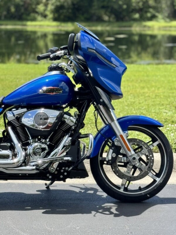 Iconic Batwing fairing has LED lighting seamlessly integrated into its shape and aerodynamics optimized for rider comfort. Blacked-out or polished engine finish options, contrast-cut wheels, and a stunning display of paint options, including three unique Factory Custom styles.