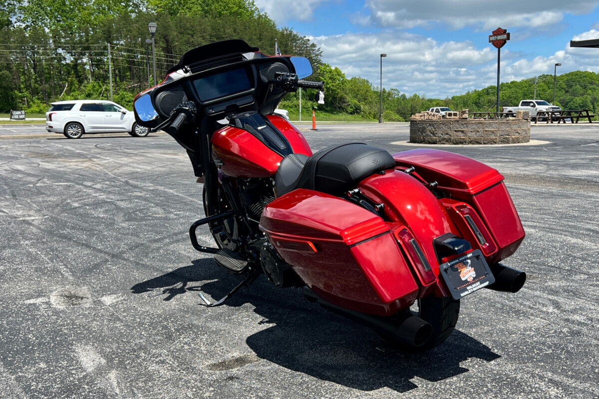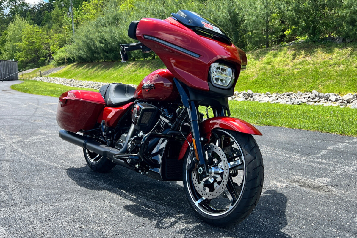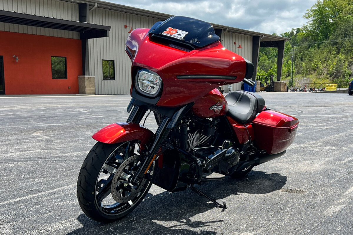 2025 Harley-Davidson Street Glide Features may include: DESIGN Iconic Batwing fairing has LED lighting seamlessly integrated into its shape and aerodynamics optimized for rider comfort. Blacked-out or polished engine finish options, contrast-cut wheels, and a stunning display of paint options, including three unique Factory Custom styles. Fairing The iconic Batwing fairing has been designed with computational fluid dynamics (CFD) to improve aerodynamics and overall rider comfort, as well as visual flow. LED Signature Lighting LED signature lighting is integrated into the bodywork, providing on-road visibility and creating a sleek, seamless visual flow. Wheels 18 inches in the rear and 19 inches in the front, contrast-cut wheels give the Street Glide a powerful stance and modern style while providing excellent on-road performance. PERFORMANCE A powerful Milwaukee-Eight 117 stays cool with liquid-cooled cylinder heads and breathes easy with a high-flowing intake. Quickly adjustable rear suspension maximizes performance no matter where the road takes you. Milwaukee-Eight 117 V-Twin Engine Big V-twin power without the heat. Equipped with liquid-cooled heads and a discrete center-mounted radiator, it ensures efficient cooling even on the hottest rides. Rear Suspension Easily adjust preload for passenger or luggage, maximizing comfort and performance in every setting. Performance Intake High-performance touring intake increases internal volume for improved airflow and engine performance. INNOVATION The classic look of the Street Glide boasts a world of modern tech and innovation, with comfort features designed to keep you riding as long as you want. 12.3-Inch TFT Display The crystal-clear, 12.3-inch touchscreen color TFT display puts navigation and infotainment at your fingertips. Ride Modes Three pre-programmed ride modes allow you to change the Street Glide’s personality with the push of a button. Change from Road to Sport to Rain, or use the customizable mode to dial in your exact tuning preference. Audio The deep lows, clean mids, and crips highs of your favorite songs play through fairing-mounted speakers, powered by a 200-watt, four-channel amplifier rated at 50 watts per channel.