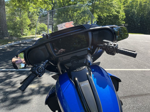 2025 Harley-Davidson® Street Glide® UltraFeatures may include:DESIGNStreet Glide style dressed up with long-mile amenities, including heated grips and a plush two-up seat to keep both you and your passenger comfortable and confident on every ride.Fairing + Tall WindshieldThe iconic Batwing fairing has been designed and sculpted using computational fluid dynamics (CFD), wind-tunnel testing, and time on the road to improve comfort and reduce buffeting. New clear windshield is four inches taller than standard Street Glide models and reduces helmet buffeting by up to 60 percent.Two-Up Comfort SeatDesigned for all-day, two-up riding, the new seat ergonomically rotates the rider’s hips forward to relieve spine pressure.StorageKing Tour-Pak® luggage carrier comes standard and has a robust passenger back pad with armrests. The hard-shell luggage carrier, fairing cubbies, and large saddlebags offer 4.9 cubic feet of combined storage—more than twice that on a standard Street Glide.PERFORMANCEMore power to cover ground in style and comfort, and strong brakes and suspension to lead the pack when the road starts to twist.Milwaukee-Eight® 117 V-Twin EngineGiving you more torque and horsepower than the Twin-Cooled 114, the Milwaukee-Eight® 117 has liquid-cooled cylinder heads and a centrally located radiator that sends air directly into the intake for quicker cooling.Rear ShocksWith three inches of travel, SHOWA® dual outboard emulsion technology shocks provide a responsive and consistent ride. Remote hydraulic preload adjustments are made quickly and easily by hand.INNOVATIONA classic silhouette boasts a host of modern tech and innovation, from comfort features to Rider Safety Enhancements that help keep you out on the road longer.12.3-Inch TFT DisplayOur most advanced display, the crystal-clear, 12.3-Inch touchscreen color TFT with Skyline™ OS lets you easily access infotainment, navigation, switch between the bike’s four ride modes, and more.Vehicle Hold ControlWhen stopped on an incline or a decline, squeeze and release the front brake lever to activate Vehicle Hold Control and keep the Street Glide Ultra from rolling.NavigationHands-free Voice Recognition System makes built-in navigation easier to use, with simple conversational commands like, “Find me a gas station.”