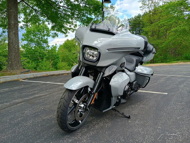 2025 Harley-Davidson® Street Glide® UltraFeatures may include:DESIGNStreet Glide style dressed up with long-mile amenities, including heated grips and a plush two-up seat to keep both you and your passenger comfortable and confident on every ride.Fairing + Tall WindshieldThe iconic Batwing fairing has been designed and sculpted using computational fluid dynamics (CFD), wind-tunnel testing, and time on the road to improve comfort and reduce buffeting. New clear windshield is four inches taller than standard Street Glide models and reduces helmet buffeting by up to 60 percent.Two-Up Comfort SeatDesigned for all-day, two-up riding, the new seat ergonomically rotates the rider’s hips forward to relieve spine pressure.StorageKing Tour-Pak® luggage carrier comes standard and has a robust passenger back pad with armrests. The hard-shell luggage carrier, fairing cubbies, and large saddlebags offer 4.9 cubic feet of combined storage—more than twice that on a standard Street Glide.PERFORMANCEMore power to cover ground in style and comfort, and strong brakes and suspension to lead the pack when the road starts to twist.Milwaukee-Eight® 117 V-Twin EngineGiving you more torque and horsepower than the Twin-Cooled 114, the Milwaukee-Eight® 117 has liquid-cooled cylinder heads and a centrally located radiator that sends air directly into the intake for quicker cooling.Rear ShocksWith three inches of travel, SHOWA® dual outboard emulsion technology shocks provide a responsive and consistent ride. Remote hydraulic preload adjustments are made quickly and easily by hand.INNOVATIONA classic silhouette boasts a host of modern tech and innovation, from comfort features to Rider Safety Enhancements that help keep you out on the road longer.12.3-Inch TFT DisplayOur most advanced display, the crystal-clear, 12.3-Inch touchscreen color TFT with Skyline™ OS lets you easily access infotainment, navigation, switch between the bike’s four ride modes, and more.Vehicle Hold ControlWhen stopped on an incline or a decline, squeeze and release the front brake lever to activate Vehicle Hold Control and keep the Street Glide Ultra from rolling.NavigationHands-free Voice Recognition System makes built-in navigation easier to use, with simple conversational commands like, “Find me a gas station.”