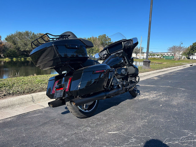 2025 Harley-Davidson® Street Glide® UltraFeatures may include:DESIGNStreet Glide style dressed up with long-mile amenities, including heated grips and a plush two-up seat to keep both you and your passenger comfortable and confident on every ride.Fairing + Tall WindshieldThe iconic Batwing fairing has been designed and sculpted using computational fluid dynamics (CFD), wind-tunnel testing, and time on the road to improve comfort and reduce buffeting. New clear windshield is four inches taller than standard Street Glide models and reduces helmet buffeting by up to 60 percent.Two-Up Comfort SeatDesigned for all-day, two-up riding, the new seat ergonomically rotates the rider’s hips forward to relieve spine pressure.StorageKing Tour-Pak® luggage carrier comes standard and has a robust passenger back pad with armrests. The hard-shell luggage carrier, fairing cubbies, and large saddlebags offer 4.9 cubic feet of combined storage—more than twice that on a standard Street Glide.PERFORMANCEMore power to cover ground in style and comfort, and strong brakes and suspension to lead the pack when the road starts to twist.Milwaukee-Eight® 117 V-Twin EngineGiving you more torque and horsepower than the Twin-Cooled 114, the Milwaukee-Eight® 117 has liquid-cooled cylinder heads and a centrally located radiator that sends air directly into the intake for quicker cooling.Rear ShocksWith three inches of travel, SHOWA® dual outboard emulsion technology shocks provide a responsive and consistent ride. Remote hydraulic preload adjustments are made quickly and easily by hand.INNOVATIONA classic silhouette boasts a host of modern tech and innovation, from comfort features to Rider Safety Enhancements that help keep you out on the road longer.12.3-Inch TFT DisplayOur most advanced display, the crystal-clear, 12.3-Inch touchscreen color TFT with Skyline™ OS lets you easily access infotainment, navigation, switch between the bike’s four ride modes, and more.Vehicle Hold ControlWhen stopped on an incline or a decline, squeeze and release the front brake lever to activate Vehicle Hold Control and keep the Street Glide Ultra from rolling.NavigationHands-free Voice Recognition System makes built-in navigation easier to use, with simple conversational commands like, “Find me a gas station.”