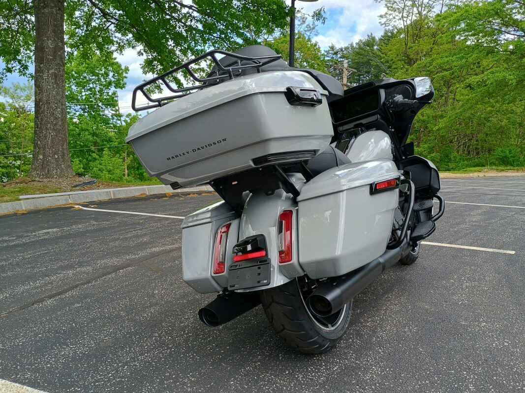 King Tour-Pak luggage carrier comes standard and has a robust passenger back pad with armrests. The hard-shell luggage carrier, fairing cubbies, and large saddlebags offer 4.9 cubic feet of combined storage—more than twice that on a standard Street Glide.