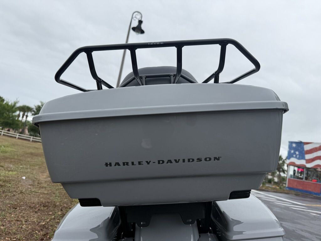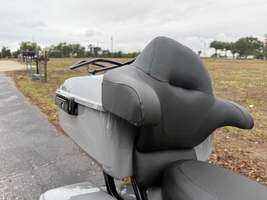 King Tour-Pak luggage carrier comes standard and has a robust passenger back pad with armrests. The hard-shell luggage carrier, fairing cubbies, and large saddlebags offer 4.9 cubic feet of combined storage—more than twice that on a standard Street Glide.
