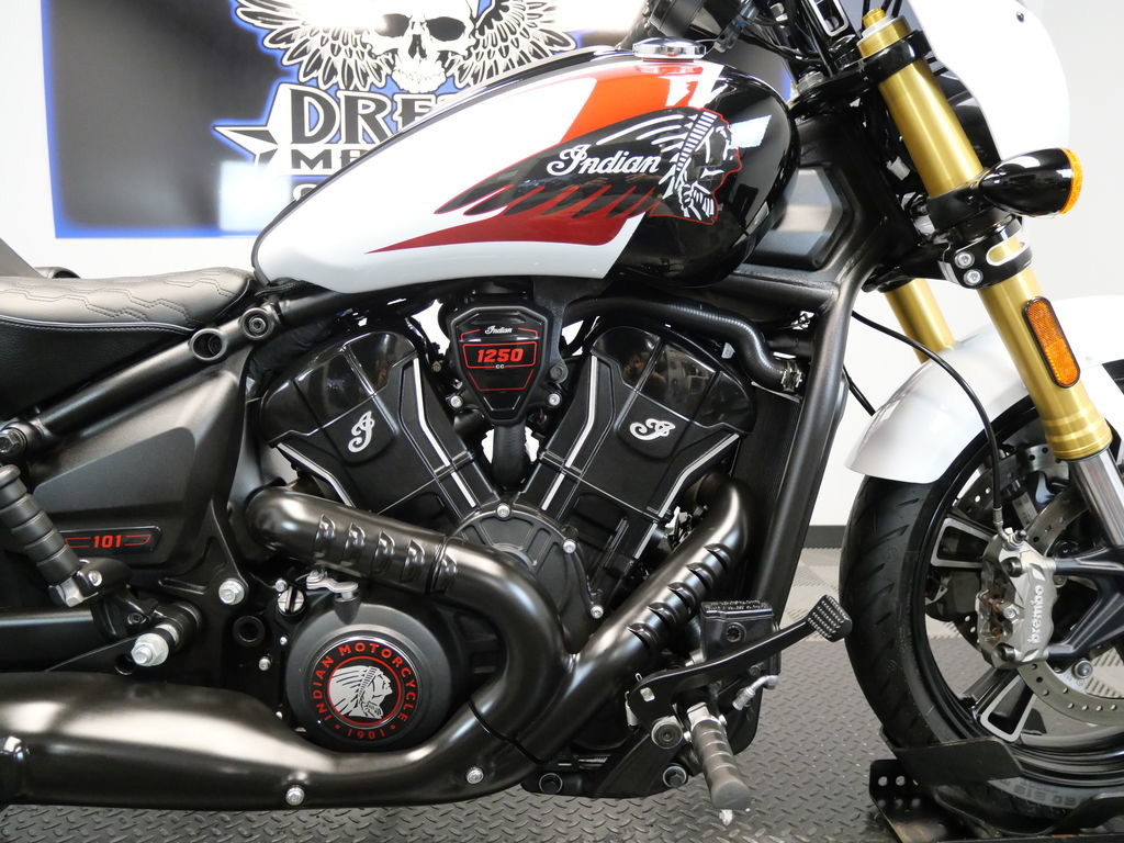 *BOOK VALUE IS $16,746 SHIPPING, LEASING, FINANCING AND EXTENDED WARRANTY MAY BE AVAILABLE! YOU ARE LOOKING AT A 2025 INDIAN 101 SCOUT WITH 3,556 MILES ON IT. IT IS GHOST WHITE METALLIC WITH GRAPHICS IN COLOR AND POWERED BY A 1250CC FUEL INJECTED ENGINE AND 6 SPEED TRANSMISSION. THE BIKE COMES WITH ABS BRAKES, CRUISE CONTROL, NAVIGATION, RIDE MODES, TRACTION CONTROL, KEYLESS RIDE, AND 1 FOB. INDIAN BOBBER SADDLEBAGS ($629.95) HAVE BEEN ADDED TO THE BIKE. THERE ARE NO SCRATCHES, DENTS, OR DINGS THAT I CAN FIND. THE CHROME AND ALUMINUM ARE IN GOOD CONDITION. THE TIRES HAVE GOOD TREAD LEFT ON THEM.