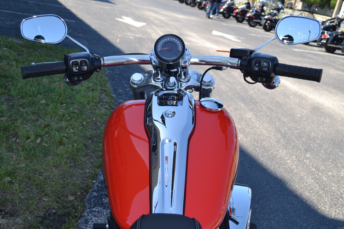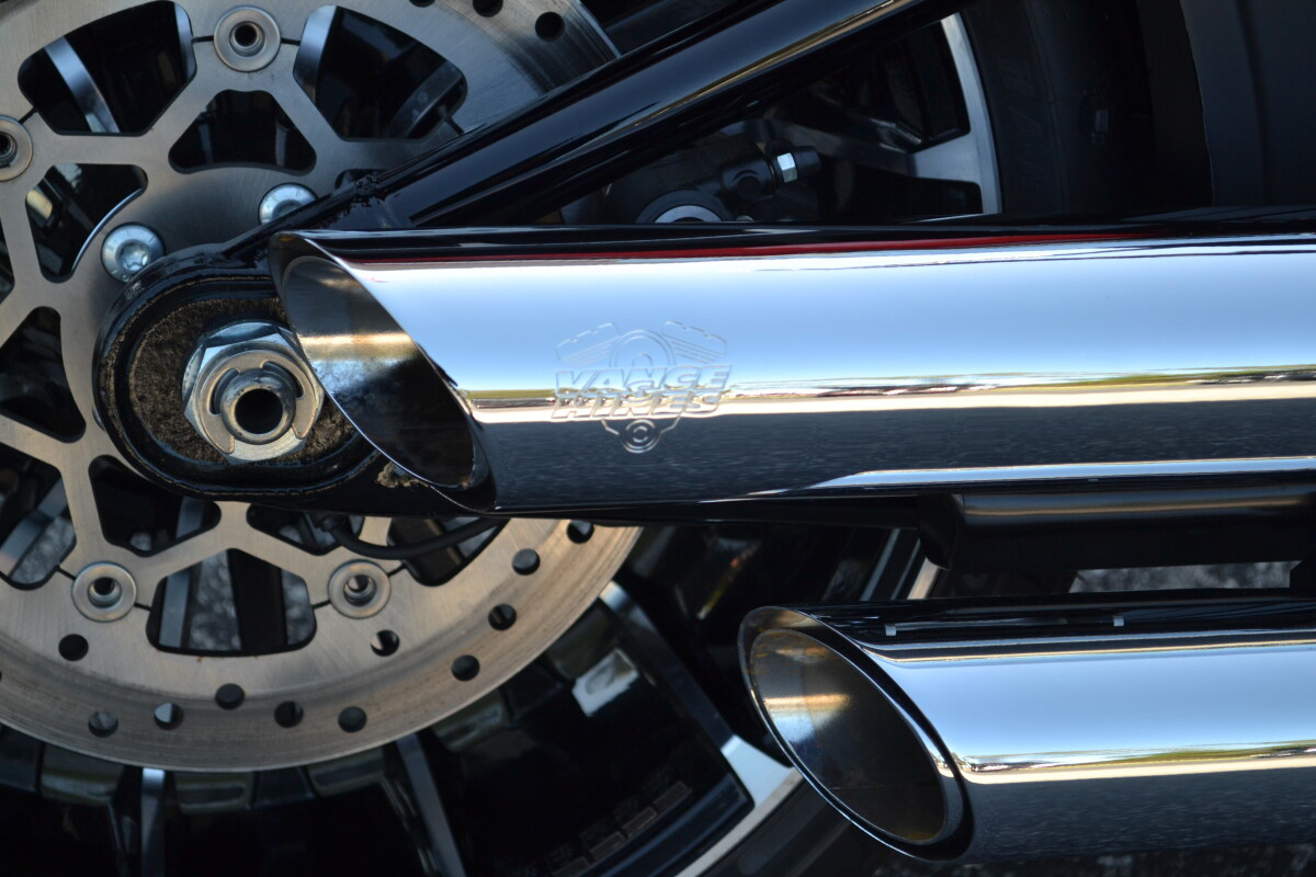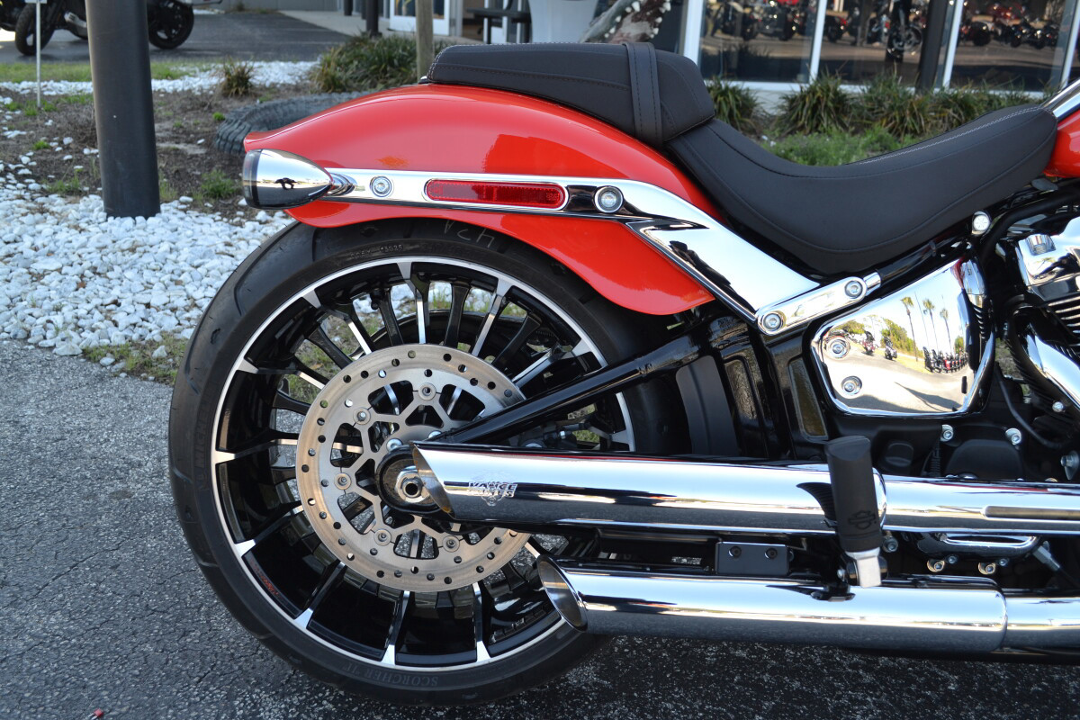 A set of Vance and Hines mufflers are installed on this 2026 Blood Orange Breakout!