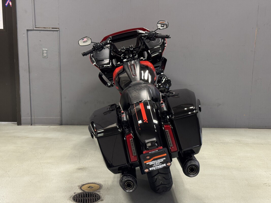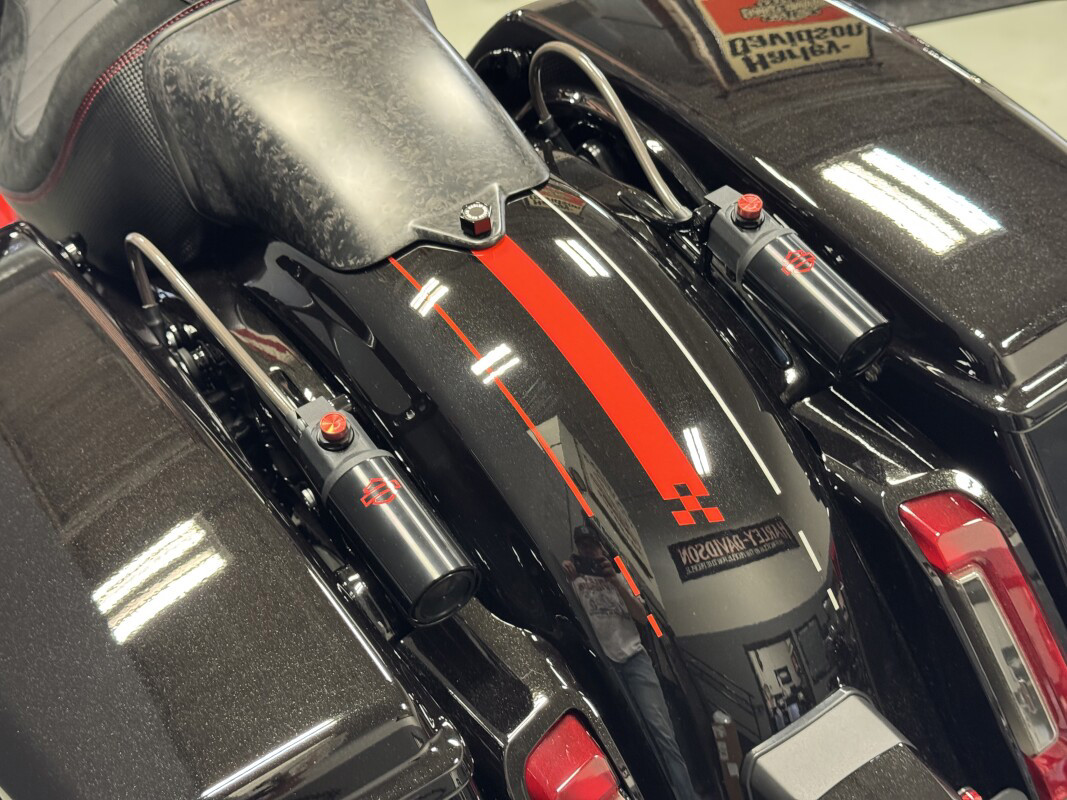 The 2026 CVO Road Glide ST is Harley-Davidson’s race-inspired bagger at its most ruthless. Its Milwaukee-Eight 121 High Output motor delivers unbelievable power and performance, fed by a Heavy Breather intake and finished with titanium-capped mufflers. Forged carbon fibre details, tall risers with a factory moto-bar setup, remote-reservoir suspension, and specialised track modes give it the look and feel of a purpose-built weapon engineered to outpace everything around you.