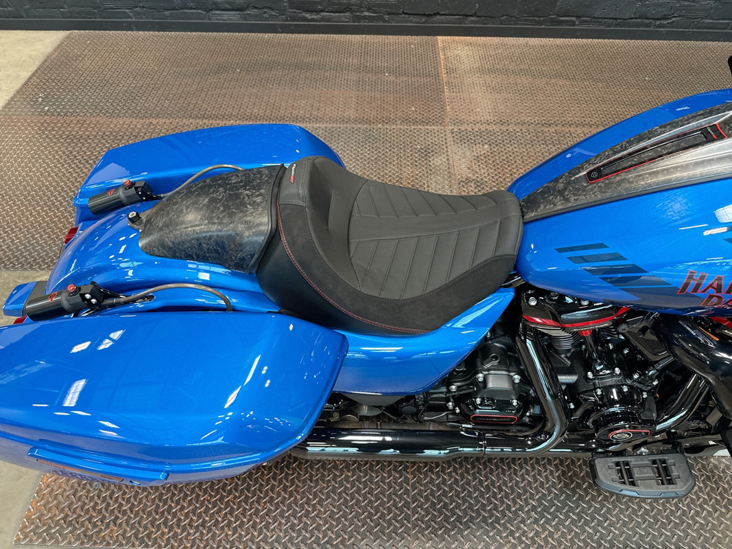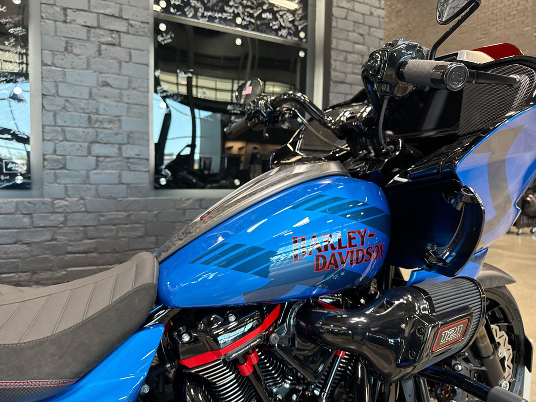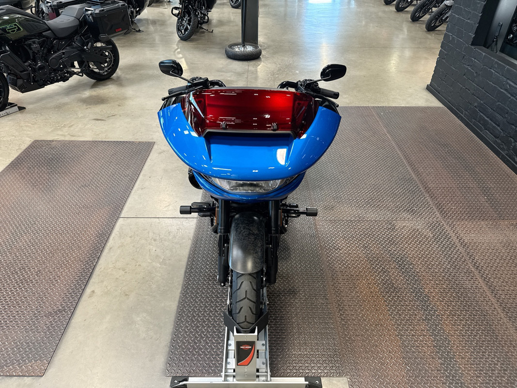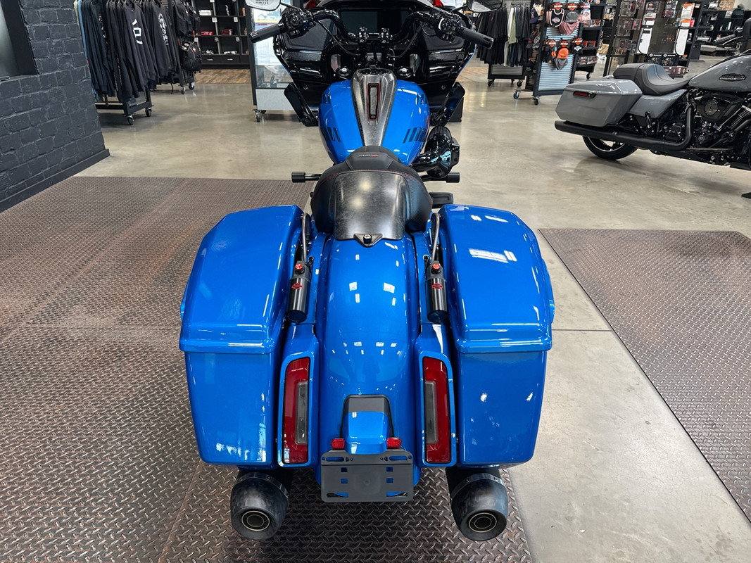 Adorned in a captivating Electric Coast with Pinstripe color scheme, this motorcycle commands attention wherever it goes. The striking paint job, accentuated by meticulous pinstriping, resonates with the spirit of the open road and embodies the bold heritage of the Harley-Davidson brand.