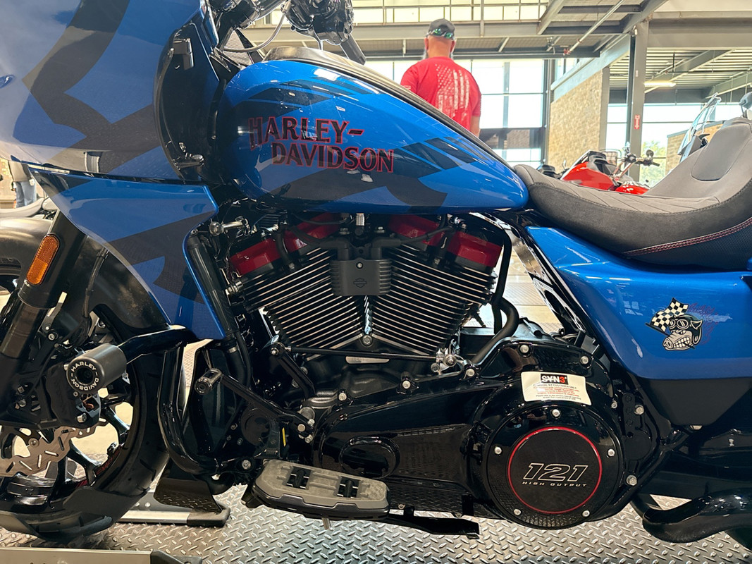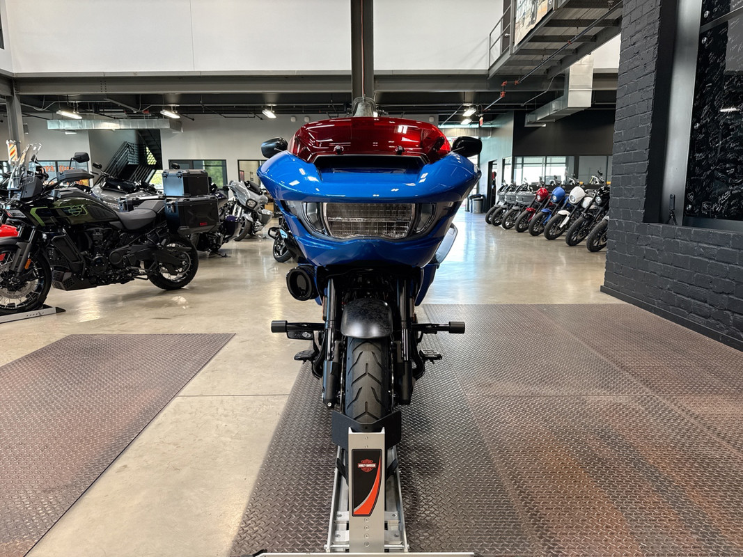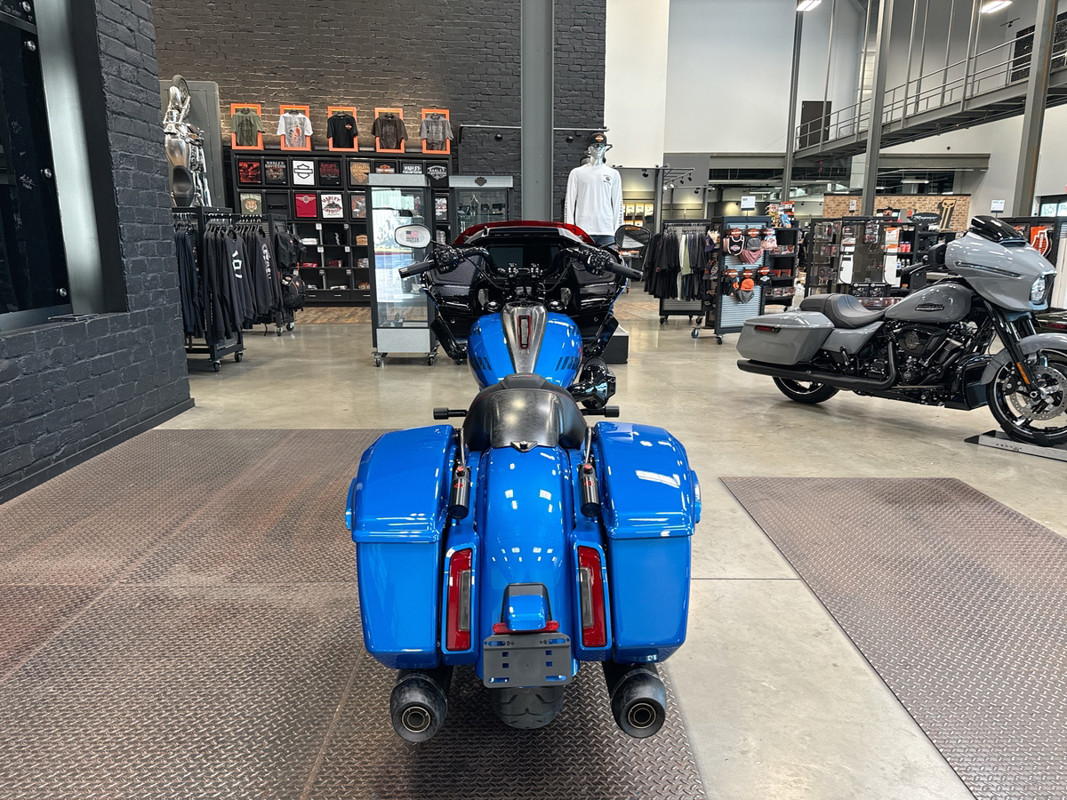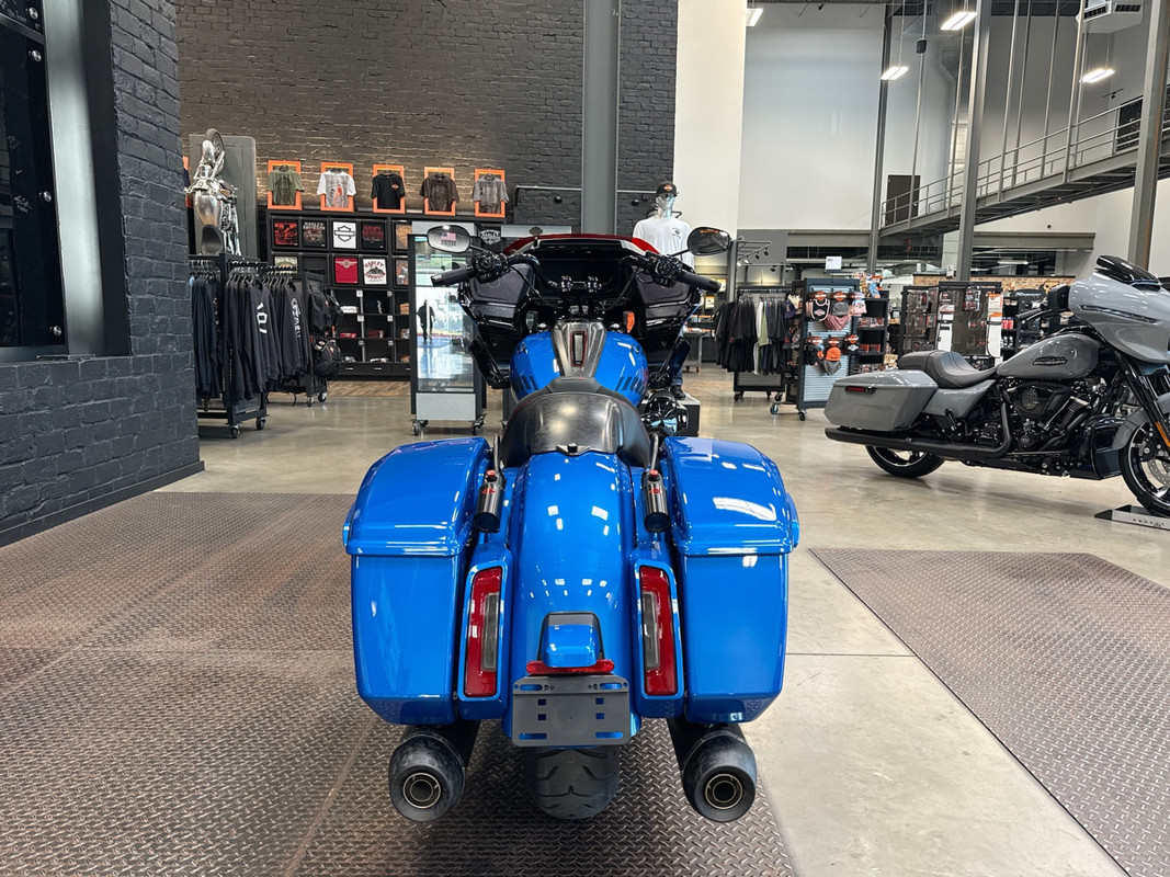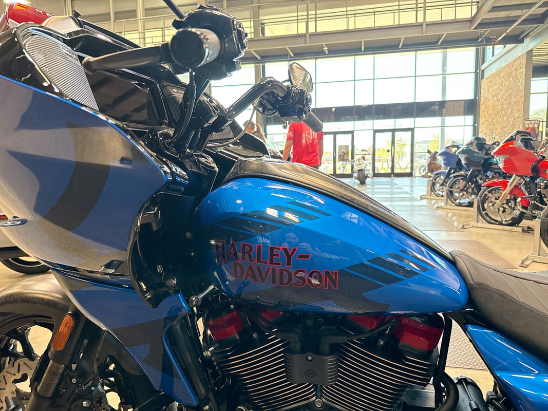 Adorned in a captivating Electric Coast with Pinstripe color scheme, this motorcycle commands attention wherever it goes. The striking paint job, accentuated by meticulous pinstriping, resonates with the spirit of the open road and embodies the bold heritage of the Harley-Davidson brand.