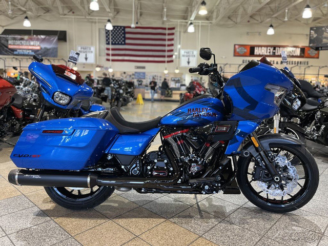 2026 Harley-Davidson® CVO™ Road Glide® STBorn for Life in the Fast Lane.The 2026 CVO Road Glide ST is Harley-Davidson’s race-inspired bagger at its most ruthless. Its Milwaukee-Eight® 121 High Output motor delivers unbelievable power and performance, fed by a Heavy Breather intake and finished with titanium-capped mufflers. Forged carbon fiber details, tall risers with a factory moto-bar setup, remote-reservoir suspension, and specialized track modes give it the look and feel of a purpose-built weapon engineered to outpace everything around you.Features may include:Forged Carbon DetailsThe front fender, console, and rear seat cowl are crafted from forged carbon fiber — an advanced material that blends strength with weight savings. The result is a finish that looks as fast as it feels, echoing the design language of modern race machines.Race-Ready CockpitA moto-style handlebar with six-inch risers sits taller for a more commanding, race-inspired riding position that makes riders feel snugged up straight from the Factory. Paired with Switchback Collection mini-boards and grips, it forms an aggressive rider triangle built for precision. Gloss Black Seven-Spoke wheels minimize mass for sharper response through every corner.Citrus Heat Re-Entry, Inferno Gray + Electric Coast ColorwaysAvailable in three exclusive colorways — Citrus Heat Re-Entry, Inferno Gray, and Electric Coast — each one amplifies the CVO Road Glide ST’s race-inspired attitude. Citrus Heat Re-Entry, available only on this model, features a bold Screamin’ Eagle graphic across the fairing and tank, while Inferno Gray and Electric Coast showcase Harley-Davidson script and an oversized Bar & Shield. This bike looks every bit as fierce as it sounds.Sharknose Fairing with Red-Tint WindshieldThe signature Sharknose fairing is both functional and fun, delivering exceptional aerodynamic performance and a menacing stance that defines the CVO Road Glide ST. A red-tinted windshield ties into Performance Red accents for a unified, track-inspired look that’ll make you feel like you’re the King of the Baggers. See what we did there?Switchback Collection Billet FloorboardsCompact billet aluminum floorboard from the Switchback Collection cut weight without cutting look and feel. Their anodized black finish and chunky rubber tops offer sure footing and a raw, functional aesthetic made for aggressive riding anywhere you go.