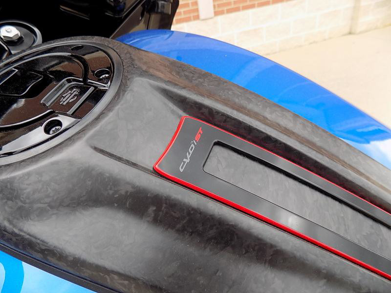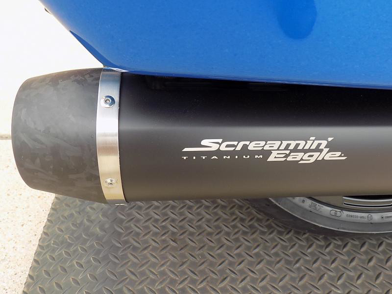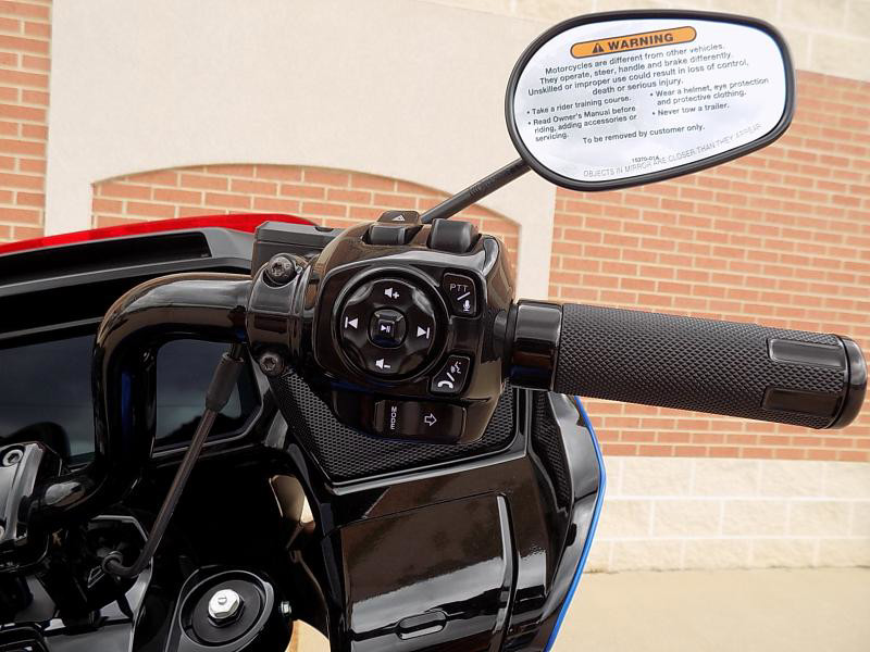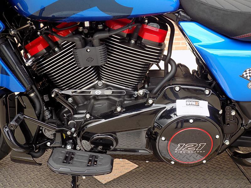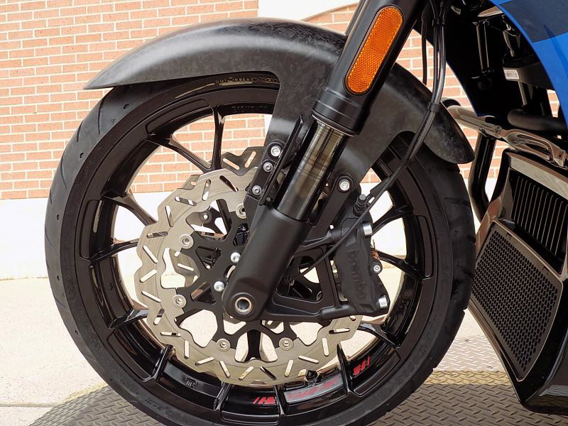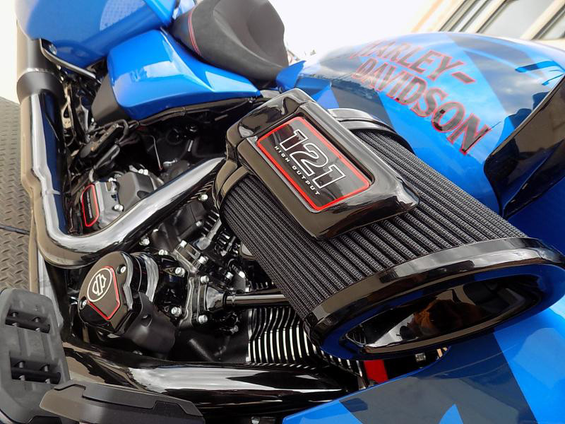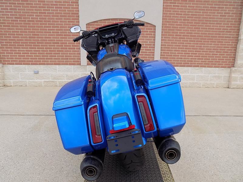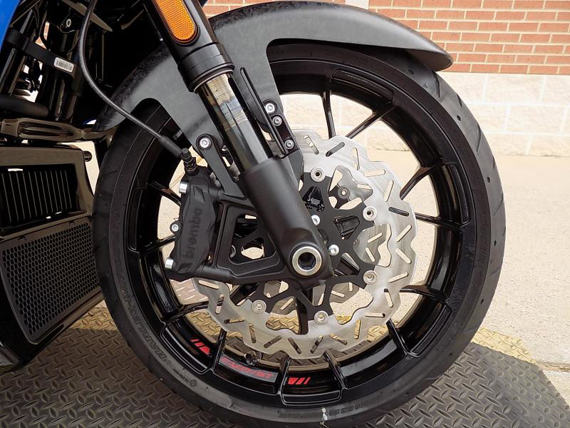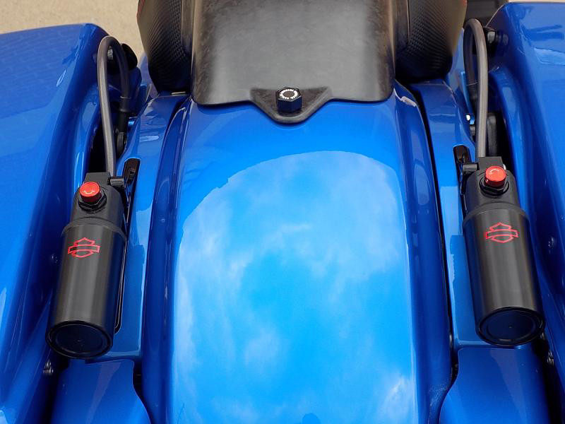The CVO Road Glide ST's striking exterior features an "Electric Coast with Pinstripe" color scheme, which effortlessly captures attention wherever you ride. This unique and electrifying hue, complemented by the detailed pinstripe, not only enhances its visual appeal but reflects the innovative spirit Harley-Davidson is known for.