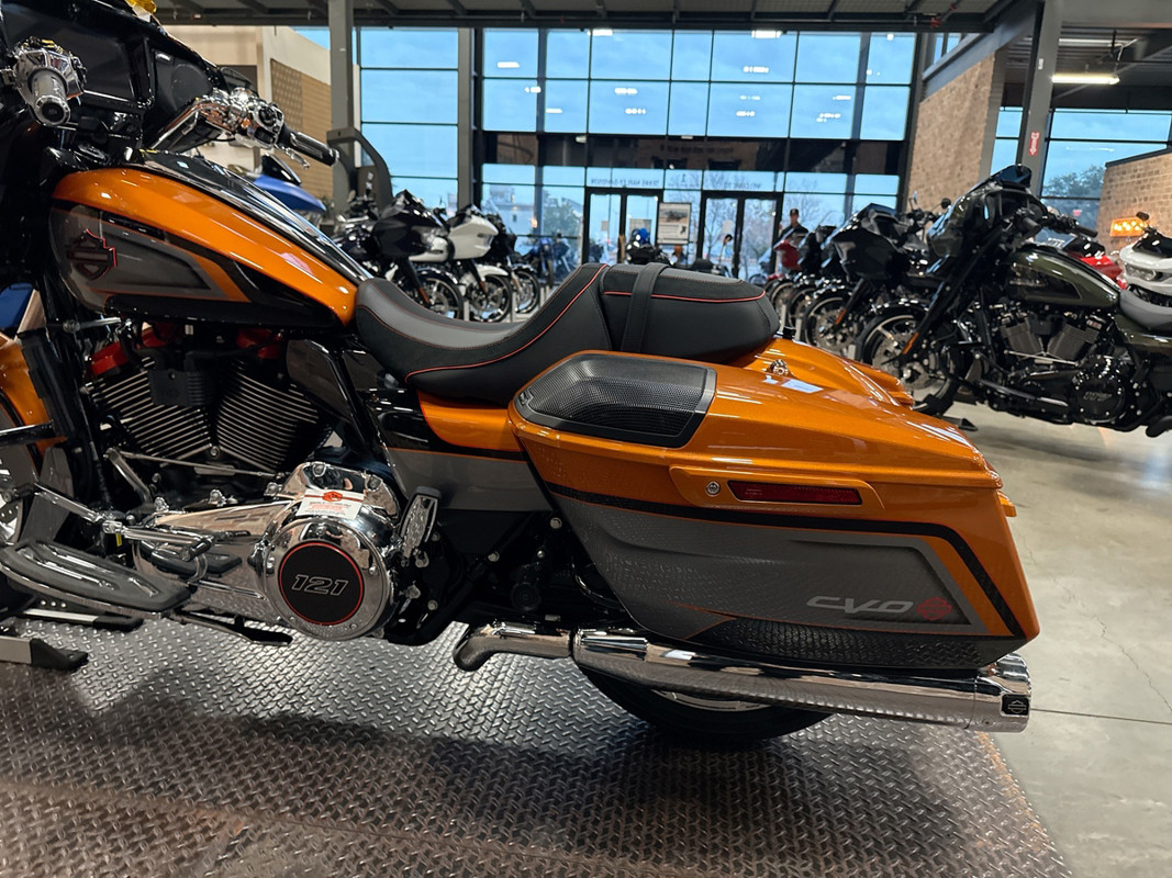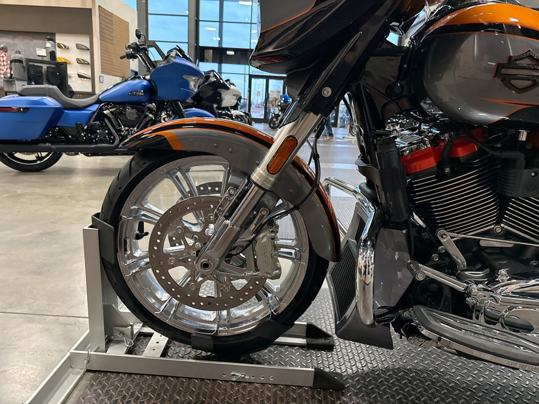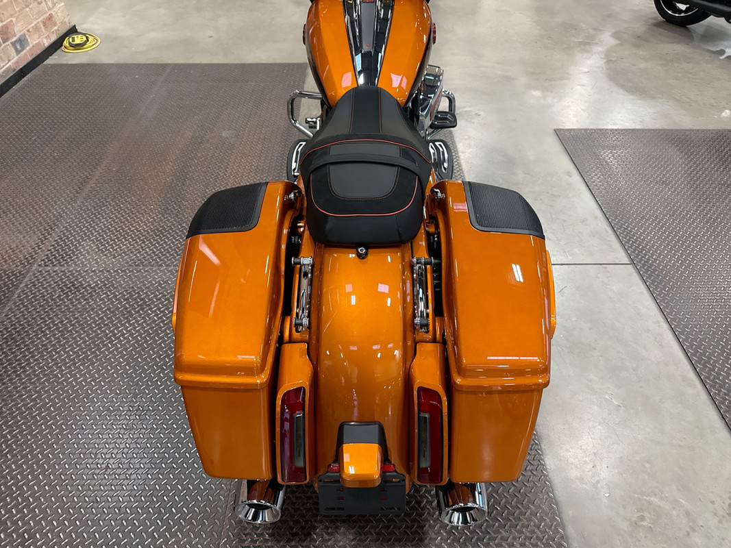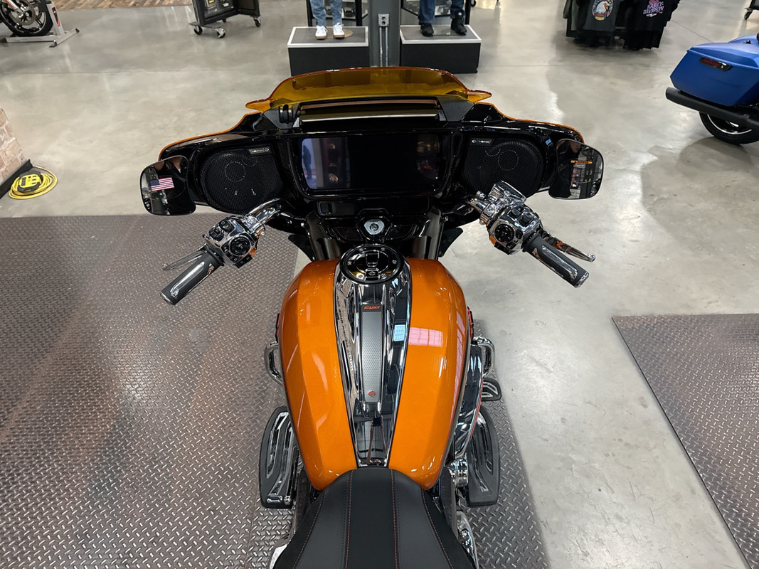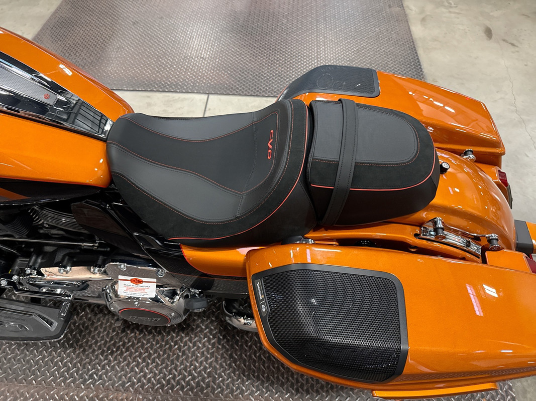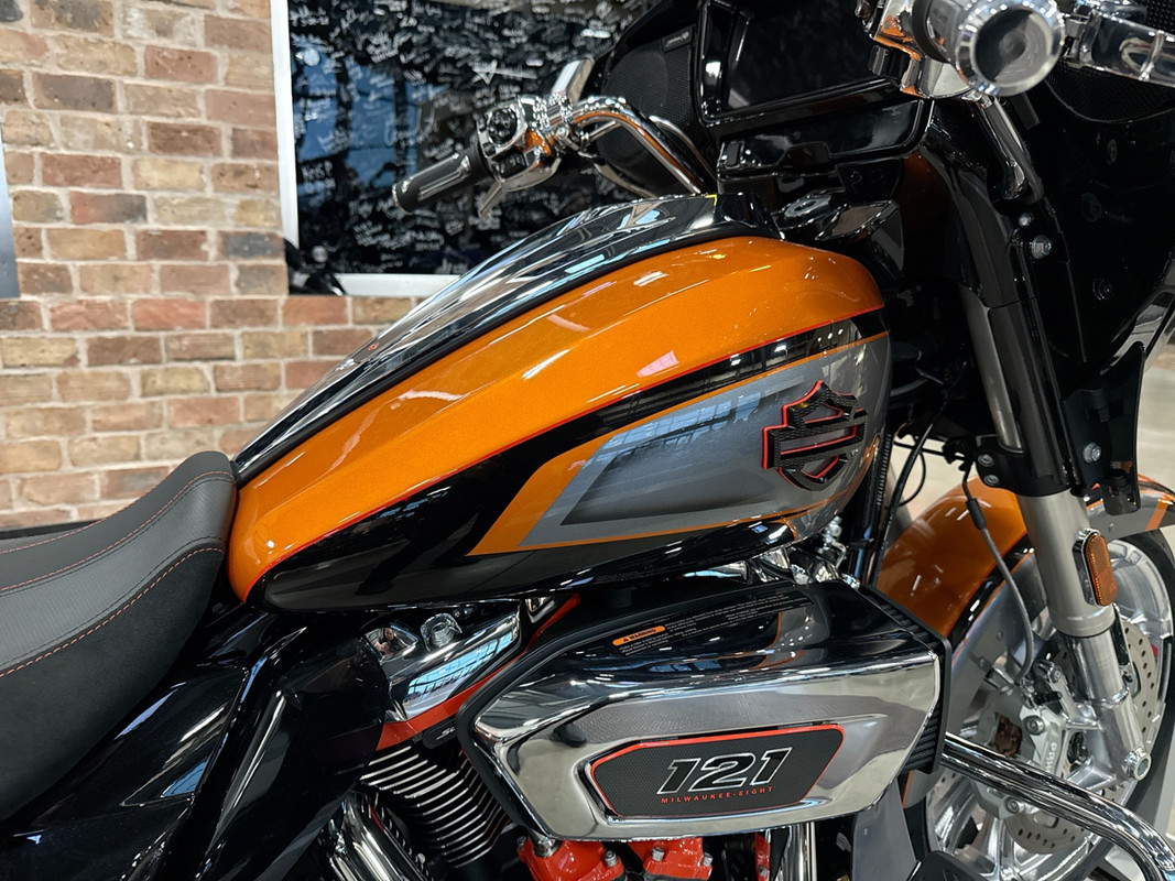 Finished in a stunning Torched Orange with Pinstripe exterior, the CVO Street Glide boasts an unmistakable look that screams authenticity and boldness. This color vividly reflects the passionate Harley-Davidson spirit, making it not just a ride but a statement on the road.