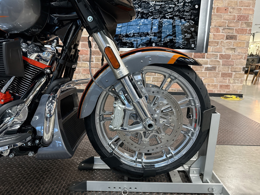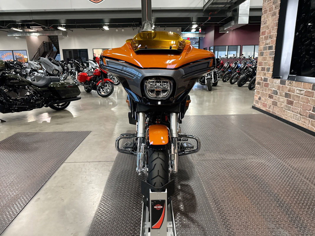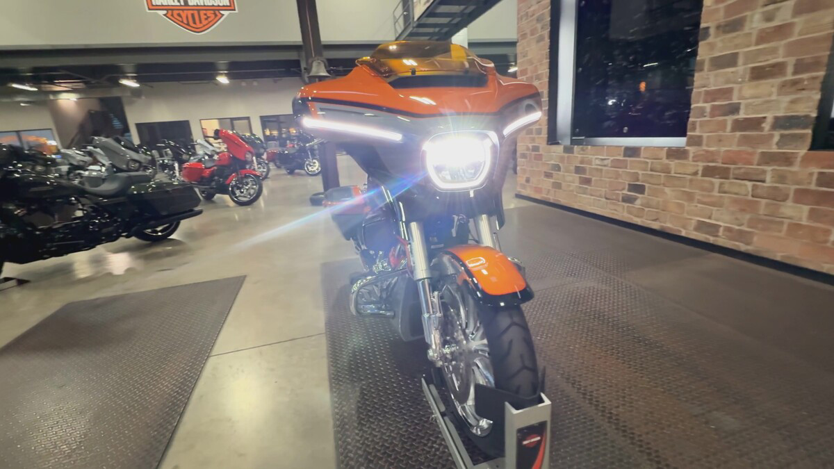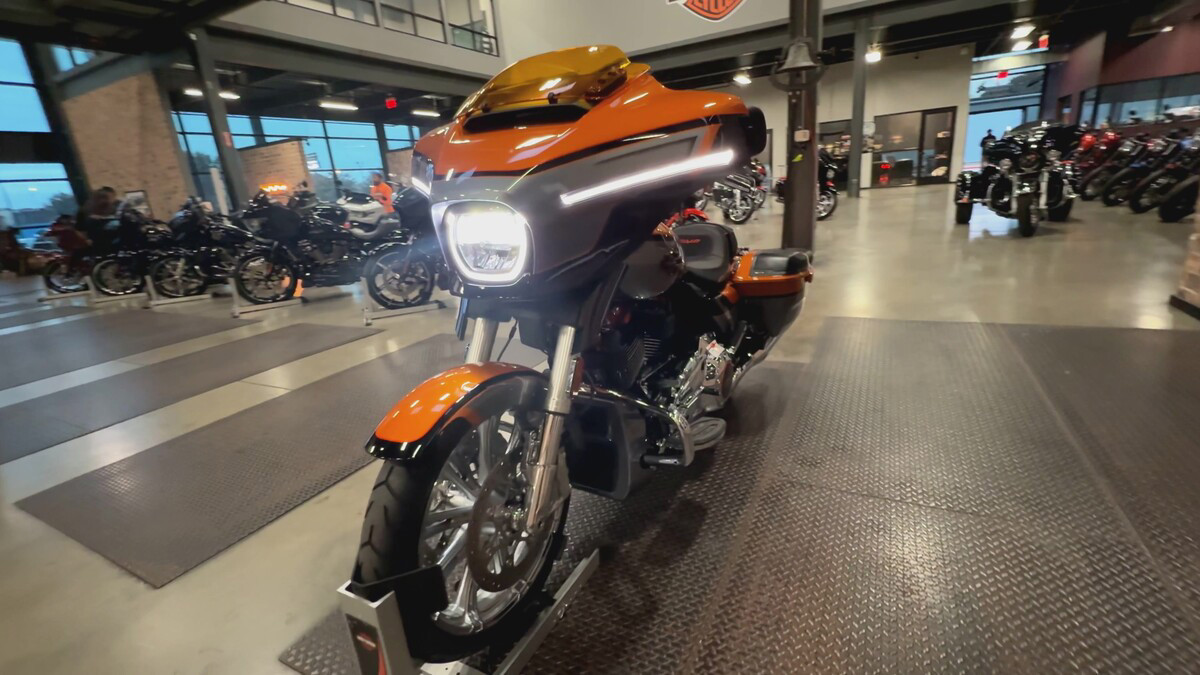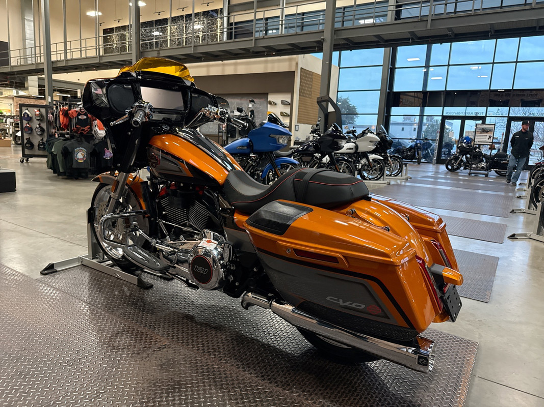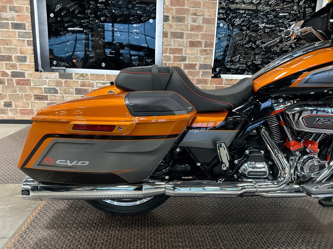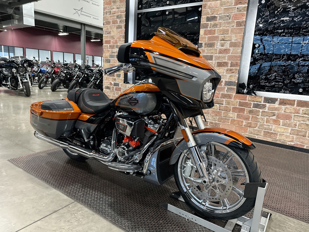 Finished in a stunning Torched Orange with Pinstripe exterior, the CVO Street Glide boasts an unmistakable look that screams authenticity and boldness. This color vividly reflects the passionate Harley-Davidson spirit, making it not just a ride but a statement on the road.