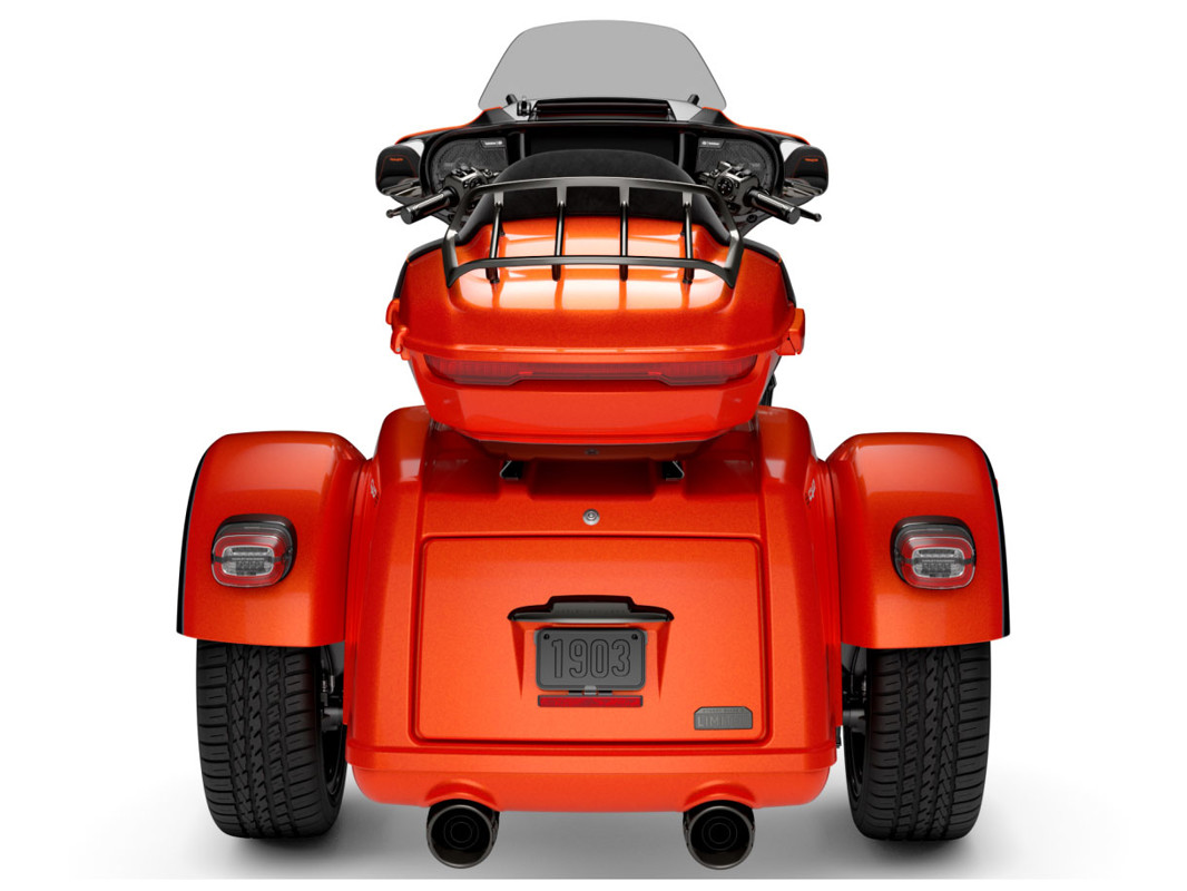 Trust us when we say this is a whole different kind of Trike. At the heart of the CVO Street Glide 3 Limited is the Milwaukee-Eight® VVT 121 motor, paired with a redesigned suspension and a new electric reverse system that make three-wheel touring feel commanding and assured. Heated seats, a trunk, the completely redesigned all-new Grand Tour-Pak®, 12.3” (312 mm) TFT display with Skyline™ OS, premium H-D™ audio, and exclusive CVO colorways elevate this machine into legend territory.