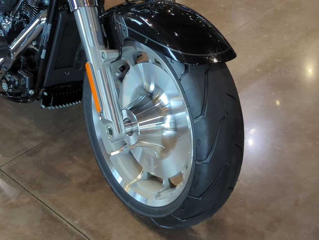 Solid Lakester cast aluminum wheels, paired with wide front and rear tires, give the Fat Boy its unmistakable steamroller stance and planted look from every angle