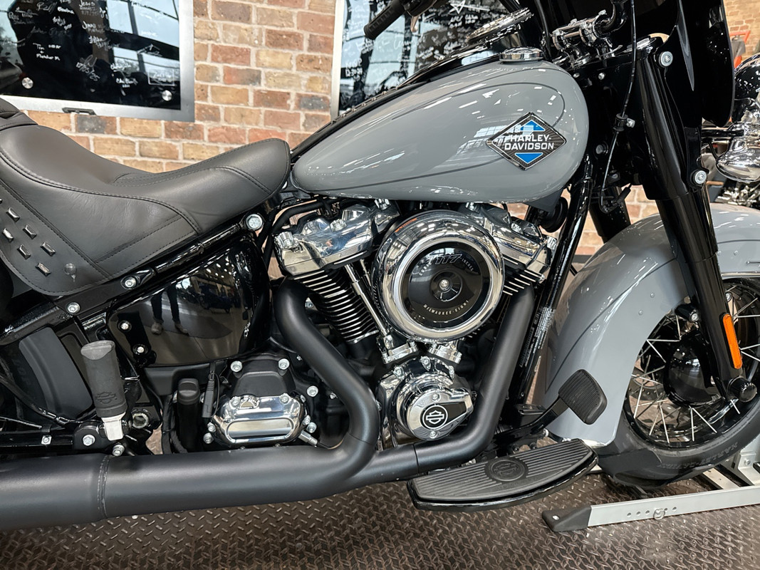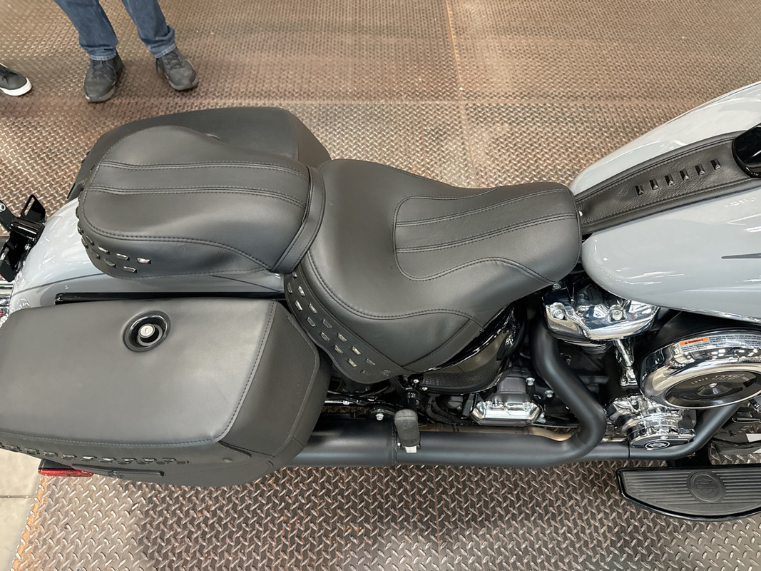 Under the hood, or rather, the seat, beats the heart of a Milwaukee-Eight 114 engine. This powerplant delivers smooth, robust power and strong torque, ensuring an exhilarating ride every time you hit the road. The Heritage Classic is built to provide unforgettable experiences, whether you're cruising down the boulevard or exploring winding country roads.