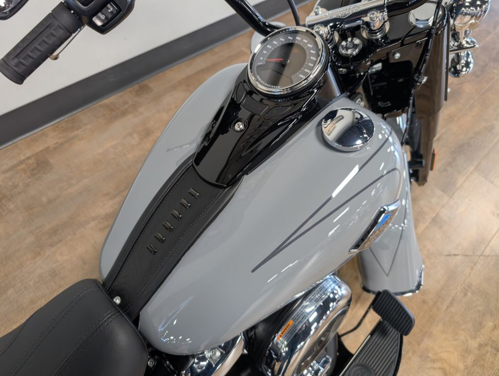 Deep paint, blacked-out trim, and the iconic tank medallion give the Heritage Classic its unmistakable silhouette. Add in plush 2-up seating, and you’ve got a factory custom that carries the weight of history and still feels built for today’s ride.